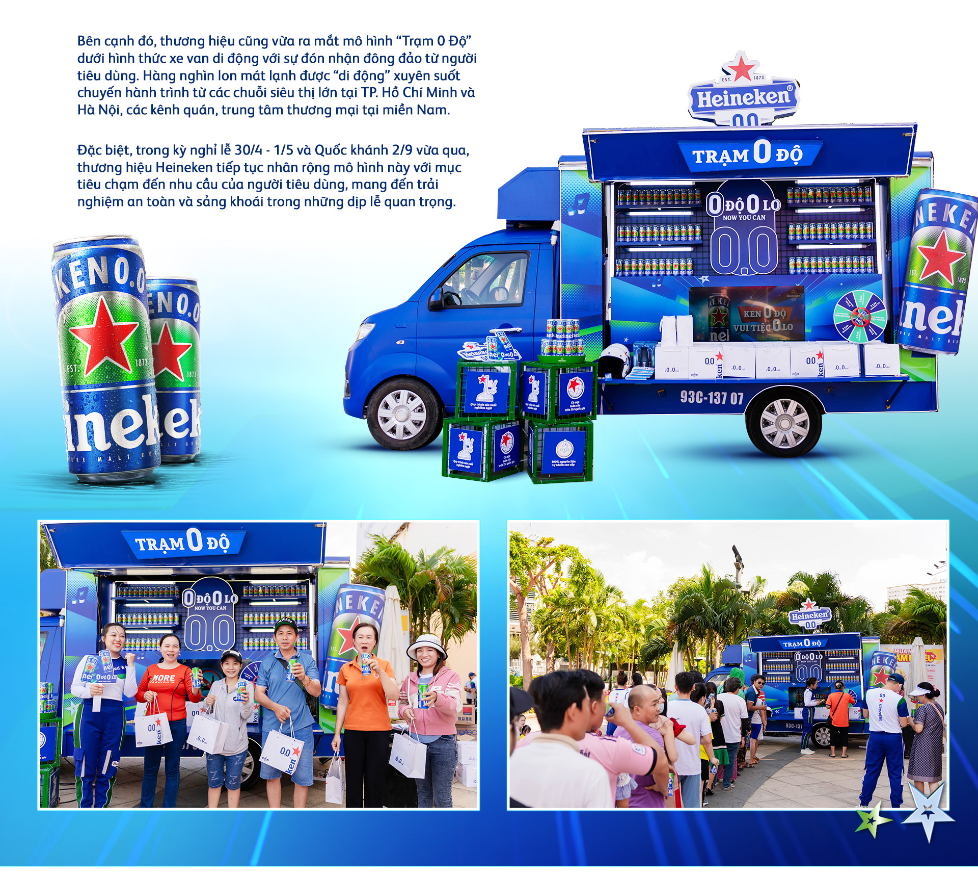 Theo đó, thời gian gần đây Heineken 0.0 đã tích cực triển khai nhiều hoạt động sáng tạo với mục tiêu lan tỏa văn hóa "uống có trách nhiệm" một cách hiệu quả, thiết thực. Các chiến dịch đáng chú ý có thể kể đến như "tiệc vui êm ái, thoải mái lái xe", và "Ken 0 độ, cầm lái 0 lo" được triển khai rộng khắp thông qua các sự kiện tiêu biểu, bao gồm "Tuần lễ không cồn" tại hồ Con Rùa ở quận 3, TP Hồ Chí Minh và "Trạm 0 Độ" tại các trạm dừng nghỉ trên các tuyến đường cao tốc trong cuối năm 2023, đầu năm 2024.