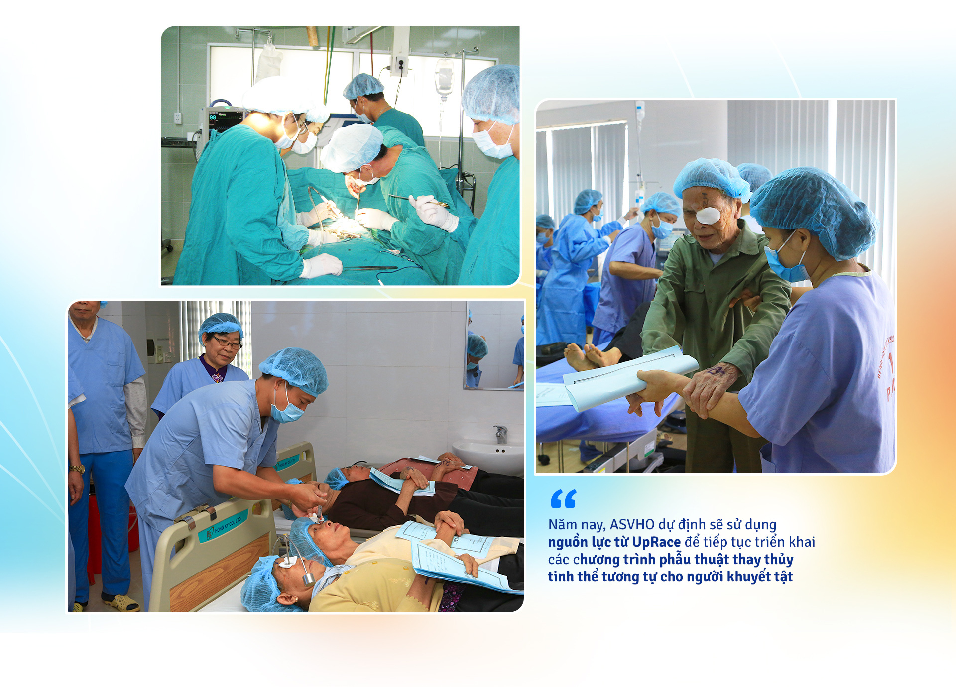 Năm nay, ASVHO dự định sử dụng nguồn lực từ UpRace để tiếp tục triển khai các chương trình phẫu thuật thay thủy tinh thể tương tự cho người khuyết tật. Hội cũng đã và đang hỗ trợ hàng ngàn trẻ em mồ côi phí sinh hoạt hằng tháng, trong đó có nhiều em mồ côi vì đại dịch COVID-19.