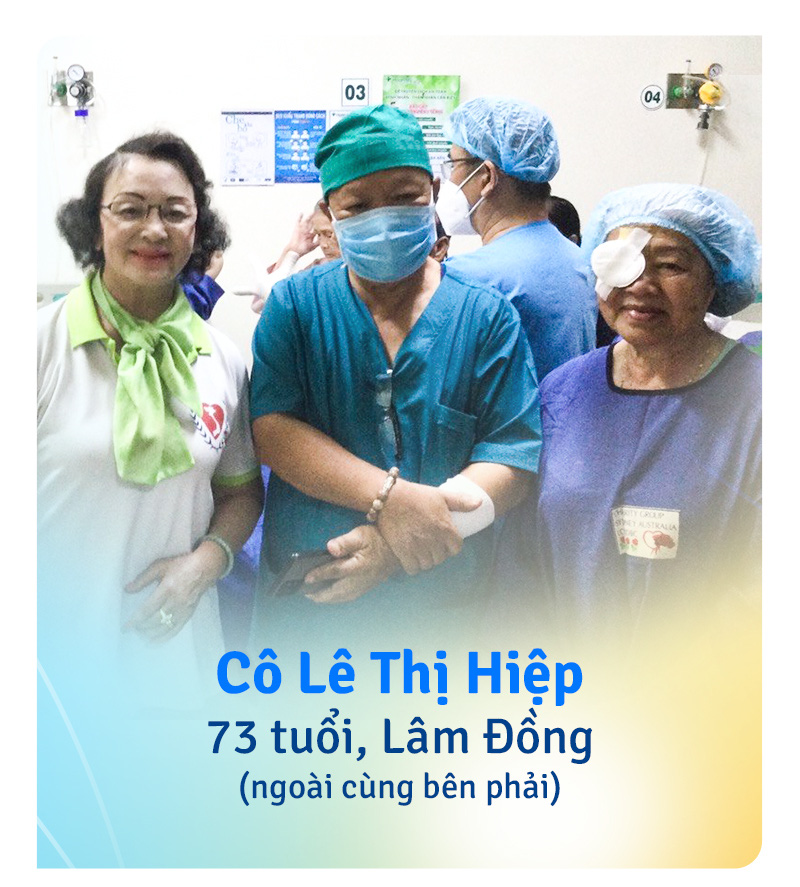 Cô Lê Thị Hiệp (73 tuổi, Lâm Đồng) là một nhà giáo về hưu, chật vật với căn bệnh đục thủy tinh thể đã nhiều năm. Đồng lương hưu khiêm tốn không đủ để cô trang trải cho một cuộc phẫu thuật bằng phương pháp Phaco.