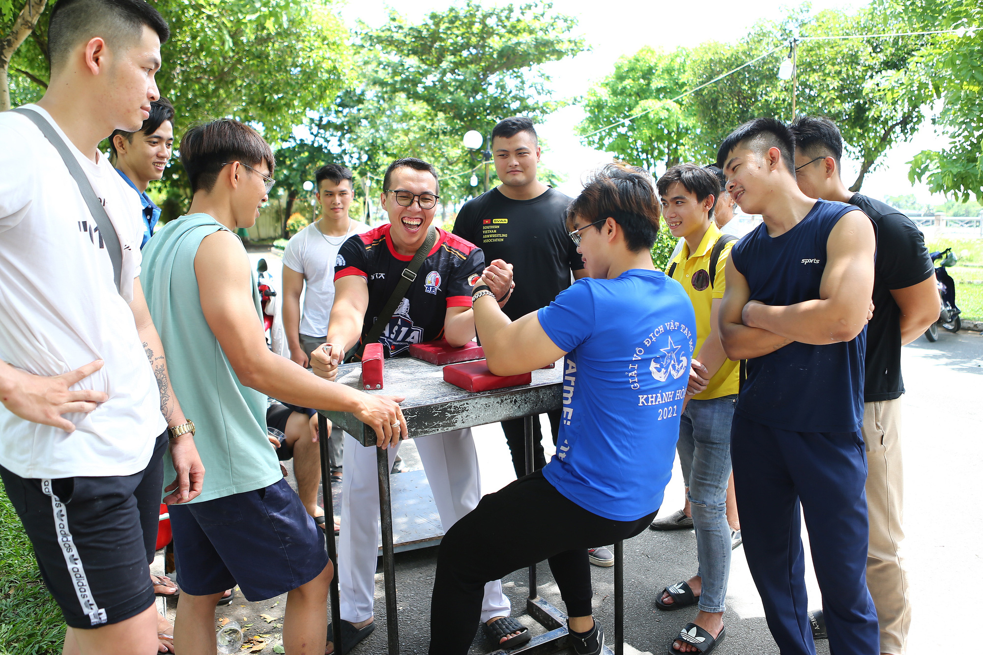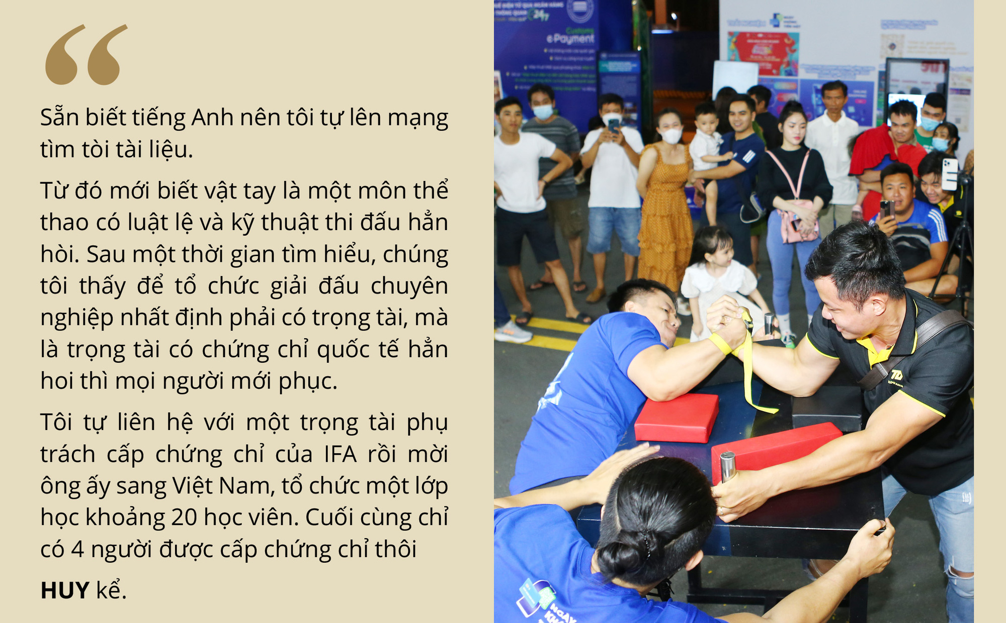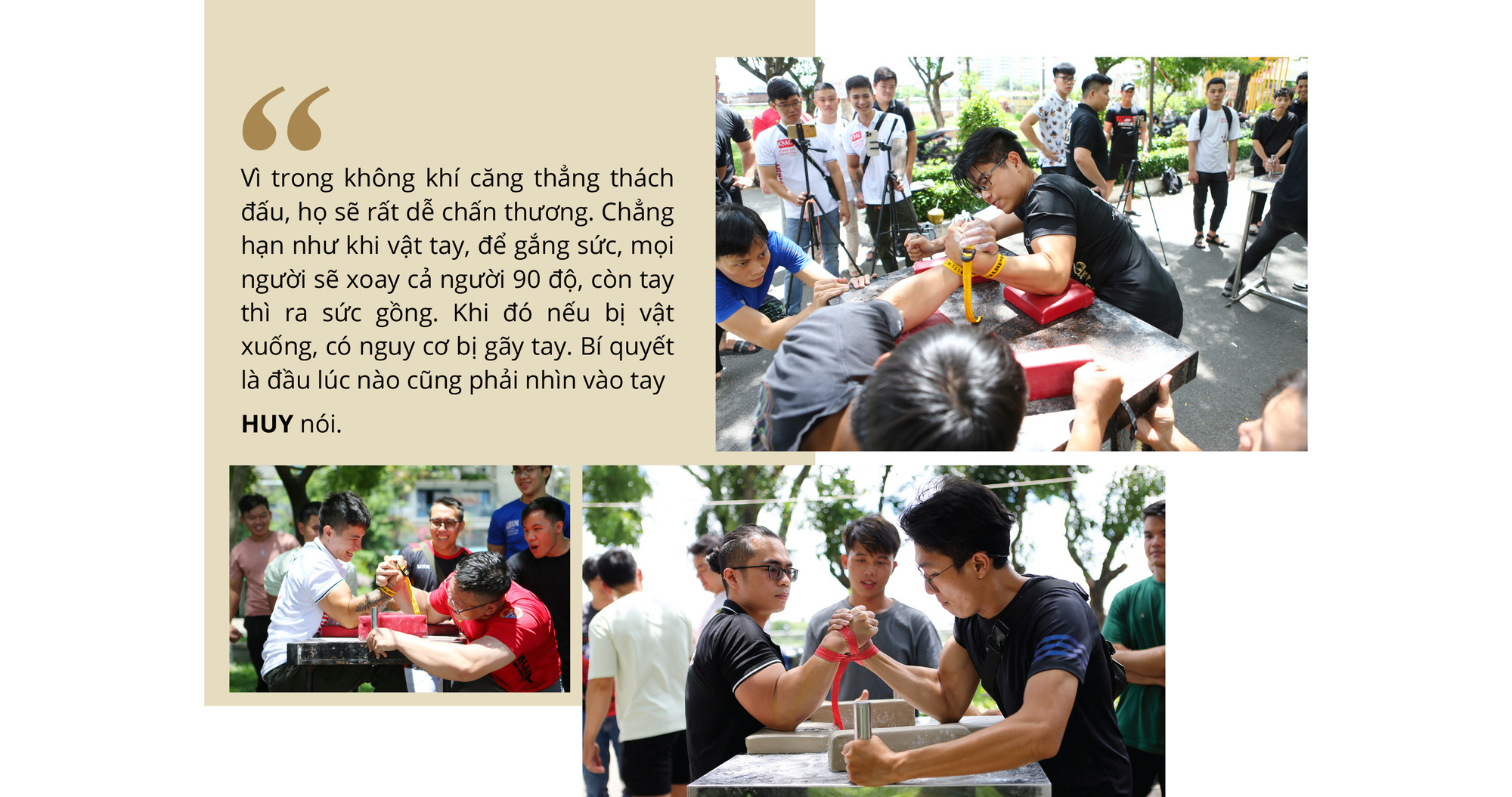"Thỉnh thoảng, chúng tôi mang bàn thi đấu đến nơi công cộng rồi tổ chức thi vật tay. Nhưng đều là người trong hội đấu với người ngoài chứ không để cho hai người ngoài đấu với nhau được.