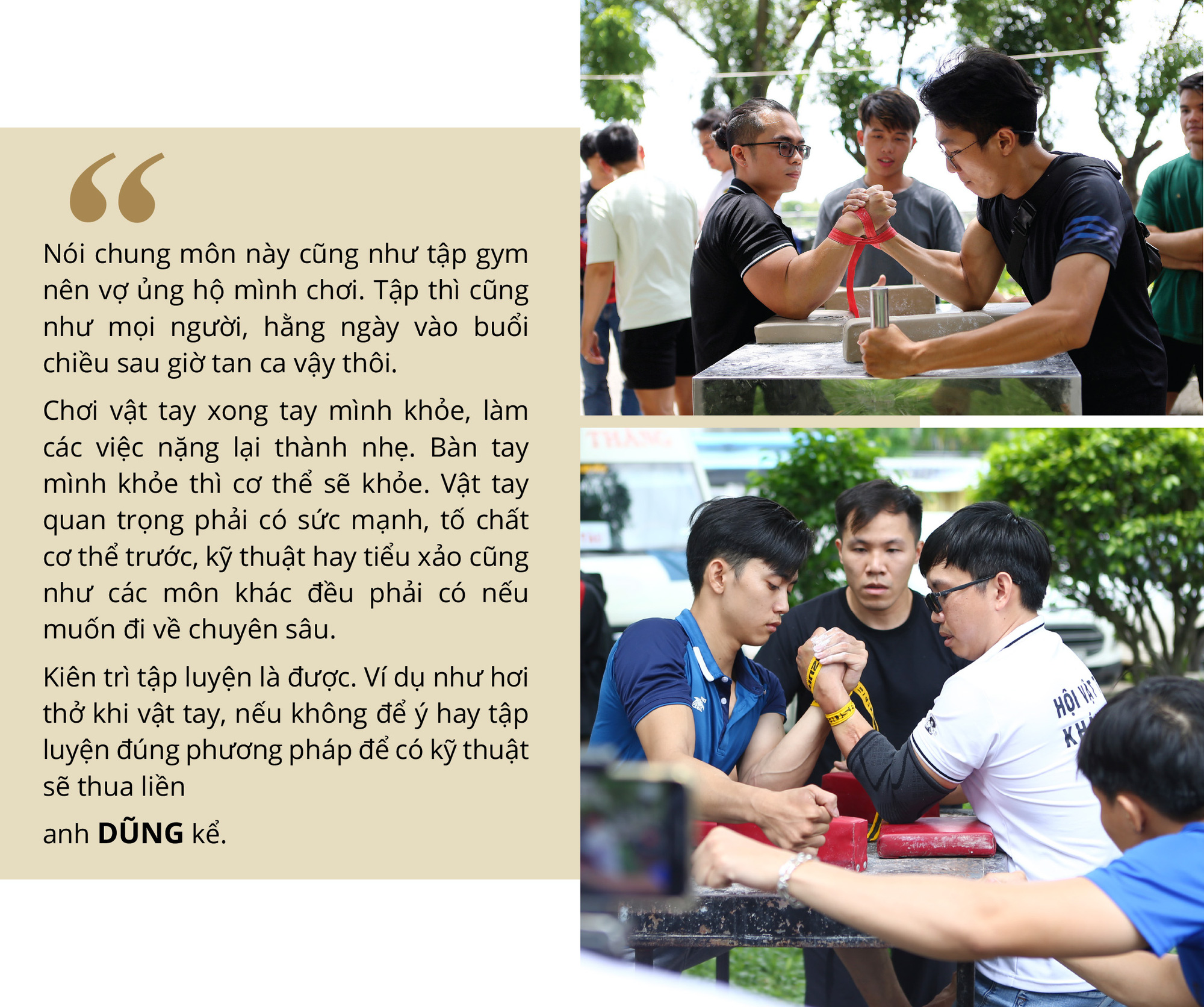 Đó chỉ là một trong nhiều nỗ lực của hội để xây dựng tính chuyên nghiệp cho môn vật tay ở Việt Nam. Ra đời từ năm 2014, hội đến nay đã tổ chức được giải đấu thường niên với quy mô hơn trăm người tham dự mỗi năm.