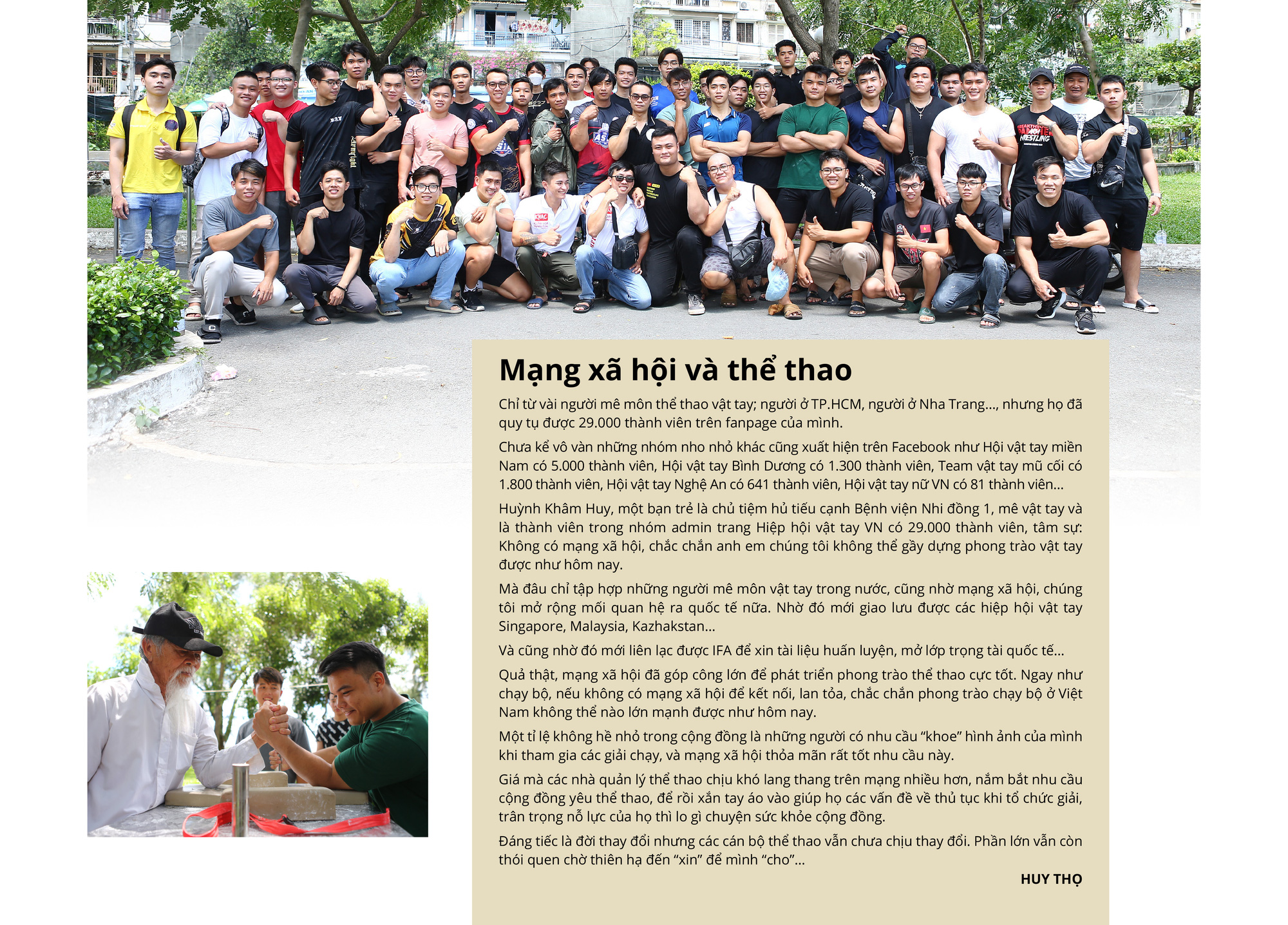 Sáng chủ nhật hằng tuần, một góc bờ sông khu Thanh Đa, quận Bình Thạnh, TP.HCM lại nhộn nhịp đông vui với cả trăm nam thanh niên tụ tập. Đó là CLB Vật tay Việt Nam do một nhóm bạn trẻ ở TP.HCM và Khánh Hòa gầy dựng.