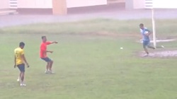 Khi gần tới vạch đích, chàng trai vội giơ hai ngón tay ăn mừng trước mặt đối thủ thì bất ngờ bị mất đà và ngã dúi dụi.