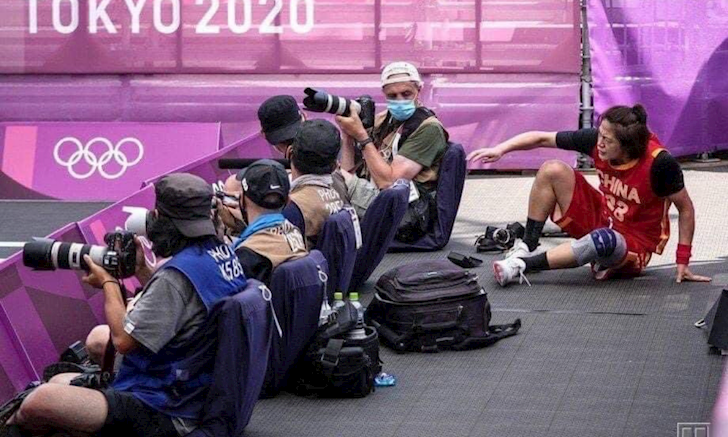 Dàn máy ảnh xịn xò của một phóng viên ảnh đang tác nghiệp tại Olympic Tokyo "tiêu tùng" sau pha bóng của VĐV Trung Quốc.Nữ cầu thủ của đội bóng rổ 3x3 Trung Quốc bay người vào khu vực dành cho phóng viên ảnh đang tác nghiệp. Cô làm gãy combo máy ảnh xịn xò, được Guardian ước tính tổng thiệt hại lên đến 350 triệu đồng.