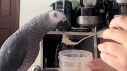 Đồ chơi để trong ống nhựa bị chặn lại bởi nhiều vật cản nhưng vẫn không làm khó được con vẹt.