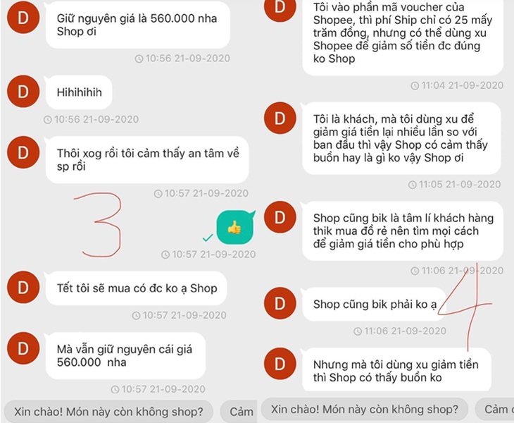 Vì thế, một vị khách vừa xuất hiện tại một cửa hàng A. kia đang khiến dân tình dậy sóng vì khả năng mặc cả đã... không tốt lại khoái "diễn sâu". Liên tục bày binh bố trận bằng những tin nhắn hỏi han, quan tâm mặt hàng, để rồi, chẳng mua gì cả?!