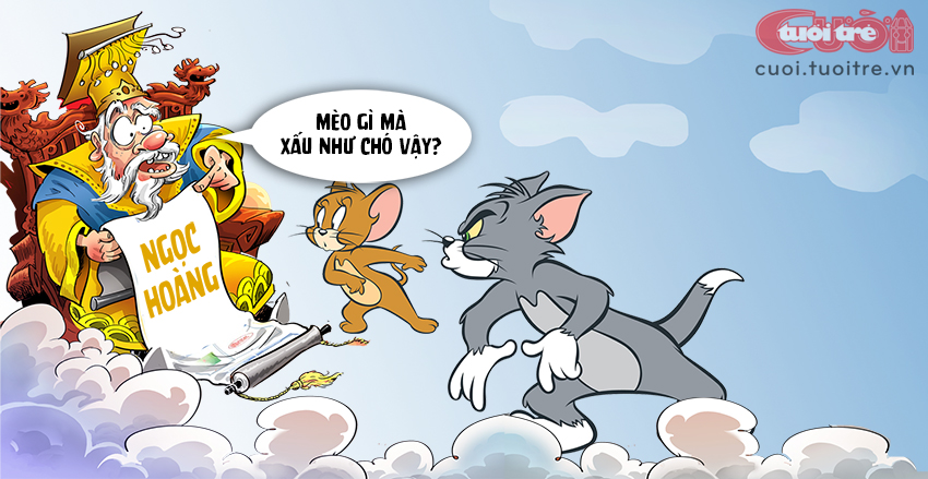 Vừa thấy ông Trời mèo Tom kể khổ: "Trời ơi! Con biết bắn súng, thổi kèn, biết nhảy lambada biết hút xì gà sao con ế hoài vậy?". Ông Trời chẳng buồn nhìn mặt Tom, ổng bèn lấy ra cái gương rồi nói: "Ngươi tự soi gương đi. Ta chưa thấy con mèo nào mà xấu như chó vậy. Dậy thì thất bại. Ta nhớ ngày xưa ngươi trông cũng được. Sao càng lớn càng xấu vậy con? Mèo người ta lên làm "hoàng thượng" hết rồi, còn ngươi...đúng là thất bại. Hỏi sao không ế bền vững?". Mèo Tom buồn rớt luôn bốn cọng râu.