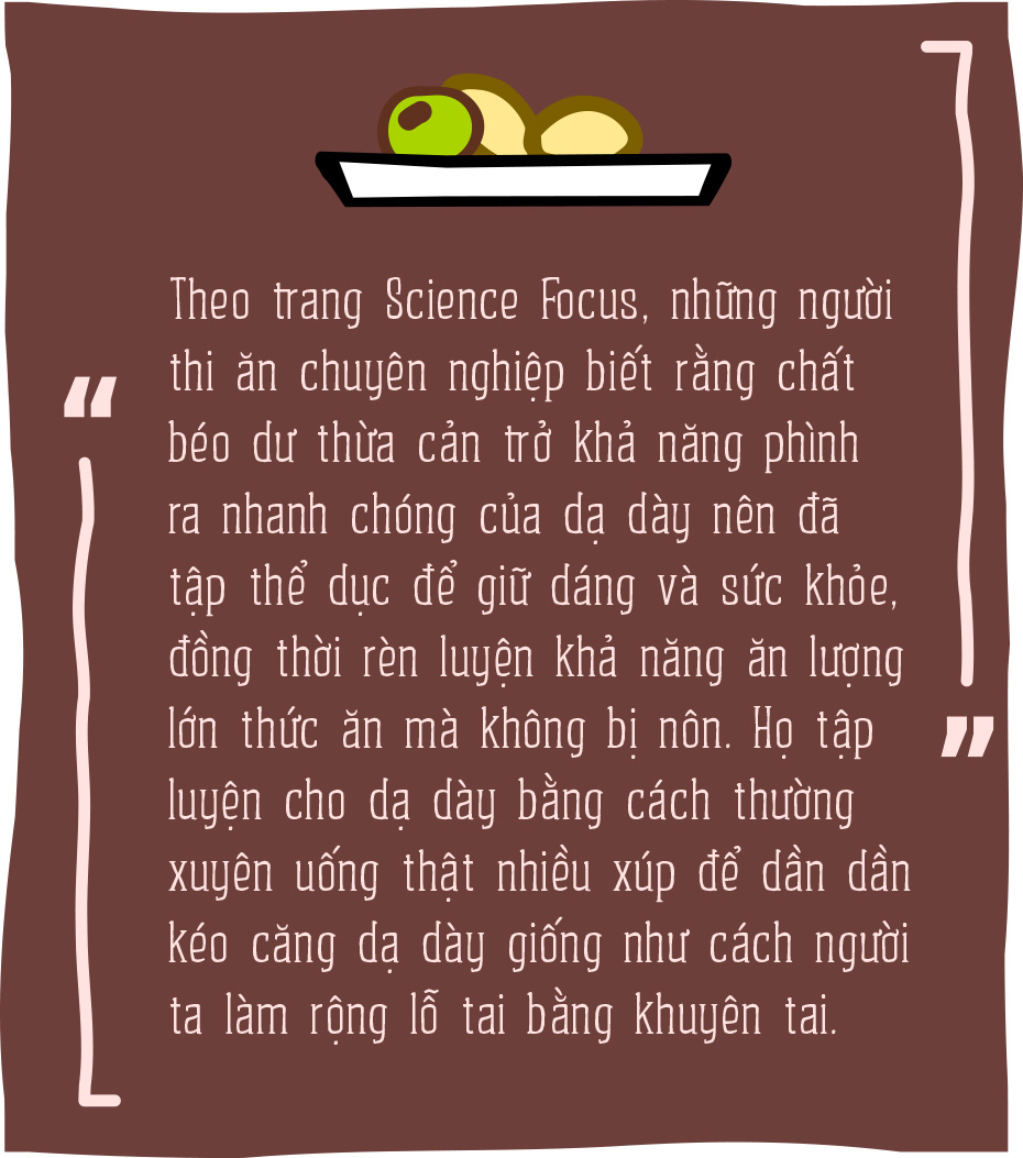 Nếu đúng là có thể ăn no đến nứt bụng, vậy những người ăn như Thánh Gióng như người làm mukbang (vừa ăn thật nhiều vừa tương tác với khán giả trực tuyến) hay người tham gia các cuộc thi ăn thì sao?