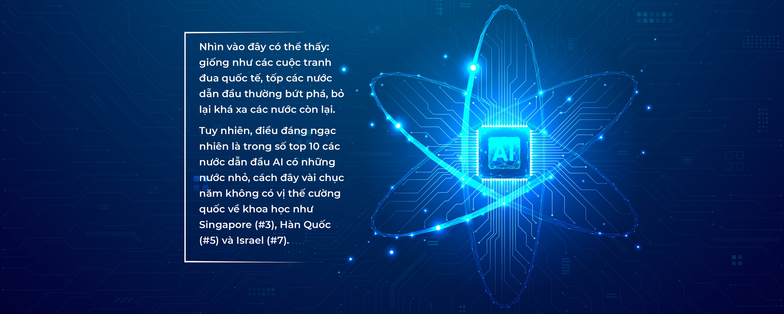 Tuy đã bị quá chậm trễ nhưng bài học của một số nước trong khu vực và trên thế giới cho thấy Việt Nam vẫn có khả năng vươn lên tham gia tích cực vào cuộc cách mạng AI, đưa các thành tựu công nghệ vào ứng dụng phục vụ cho người dân và cho sự phát triển của quốc gia.