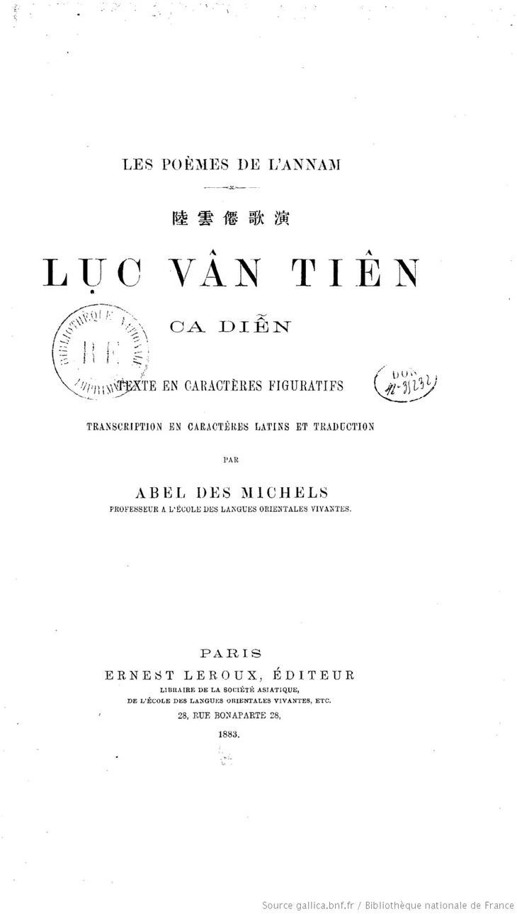 TTCT - Một nguồn cội vắn tắt của việc nghiên cứu khoa học và khách quan về Việt Nam - ngày nay gọi là Việt Nam học. Gốc rễ của ngành nghiên cứu ngôn ngữ và văn hóa Việt Nam bắt nguồn từ mấy thế kỷ trước, vào thời chủ nghĩa thực dân châu Âu. Cùng các thương thuyền và chiến thuyền châu Âu khám phá châu Á có vài tu sĩ và nhà truyền giáo Công giáo dòng Tên. Họ là những người đầu tiên thiết lập quan hệ trực tiếp giữa châu Âu và châu Á thời kỳ đó qua các nghiên cứu và ghi chép về dân tộc, văn hóa, xã hội... các nước Viễn Đông. Toàn cảnh Bảo tàng điêu khắc Chăm ở Đà Nẵng, với tấm biển bên trái ghi chữ Viện Viễn Đông Bác Cổ và bên phải là “khu cổ vật Chăm”. Ảnh không đề ngày. Ảnh: Wikipedia.org Từ những nhà truyền giáoNhững nhà truyền giáo này đến Viễn Đông, bao gồm Việt Nam, dưới lá cờ của những vương quốc châu Âu và Giáo hội Công giáo Roma. Các nền văn minh cổ ở Viễn Đông đã gây ấn tượng mạnh với họ. Trong các nhà truyền giáo, nhiều người có học thức sâu rộng về toán, thiên văn học, thực vật học, địa lý, nghệ thuật… mà họ thể hiện trong mối quan hệ với các triều đại Trung Hoa và Việt Nam. Tiếp xúc của hai phạm vi văn hóa này thông qua các nhà truyền giáo ban đầu đã dẫn đến giao lưu văn hóa và tri thức trước cả thương mại. Ở Việt Nam, nhiều tu sĩ và nhà truyền giáo Công giáo đến Đại Việt vào thời Trịnh - Nguyễn phân tranh hoạt động ở cả đàng ngoài và đàng trong.Một nhà truyền giáo dòng Tên đặt chân sớm vào đất Việt Nam là Francisco de Pina (1585 - 1625), người Bồ Đào Nha, cư ngụ ở thương cảng Hội An. Để truyền giáo, ông nghĩ ra một hệ chữ viết mới dựa vào chữ Latin và soạn những tác phẩm tiên phong về ngôn ngữ và từ vựng tiếng Việt. Công trình của De Pina sau này được nhà truyền giáo dòng Tên người Pháp Alexandre de Rhodes kế tục và hoàn thành. Chữ viết mới sau này đã trở thành chữ quốc ngữ của Việt Nam.Một nhà truyền giáo quan trọng khác là Girolamo Maiorica (1591 - 1656), người Ý. Có lẽ ông là người nước ngoài đầu tiên ở Việt Nam thành thạo chữ Nôm như một học giả Việt Nam. Maiorica để lại hơn 40 tác phẩm về Công giáo viết bằng chữ Nôm. Mặc dù phần lớn đã mất, nay vẫn còn 15 tác phẩm được lưu trữ tại Thư viện Quốc gia Paris, tổng cộng lên tới khoảng 1,4 triệu chữ Nôm.Thời thuộc địaTiếp đó, ở vùng Tây Nguyên ngày nay có nhà truyền giáo Pháp Pierre Dourisboure (1825 - 1890), người đã sống chung với người Ba Na ở Kon Tum. Ông soạn tác phẩm dân tộc ký (ethnographic) đầu tiên về một dân tộc miền Tây Nguyên, ghi chép về phong tục, tổ chức xã hội, tín ngưỡng và văn hóa trong cuốn Les Sauvages Bahnar (tựa tiếng Việt là “Dân Làng Hồ”) năm 1870, sau khi đã sống cùng người Ba Na ở Kontum khoảng 35 năm; rồi Từ điển Ba Na - Pháp (Dictionnaire Bahnar - Français) năm 1889 - từ điển đầu tiên về ngôn ngữ một dân tộc Tây Nguyên. Dưới thời Pháp thuộc, các thế hệ tu sĩ và nhà truyền giáo Pháp tiếp theo được Hội Thừa sai Paris cử đến Đông Dương. Ngoài việc truyền giáo, họ tiếp tục nghiên cứu về văn hóa, ngôn ngữ, lịch sử, địa lý…Dù phải công nhận vai trò nổi bật của các nhà truyền giáo châu Âu trong công cuộc nghiên cứu văn hóa Việt Nam, cũng cần nói rõ mục đích của họ là khiến người Việt và các dân tộc khác ở Đông Dương chấp nhận và theo đạo Công giáo. Vai trò tiên phong của họ phải được đặt trong bối cảnh lịch sử chủ nghĩa thực dân. Điều đó đồng nghĩa nghiên cứu của họ là từ góc nhìn chủ quan về uy quyền văn hóa của châu Âu so với phương Đông - và cả phần còn lại của thế giới. Cũng có những biệt lệ, nhưng không nhiều. Về cơ bản, mục đích vẫn là biện minh cho công cuộc xâm lược và thực dân hóa.Cũng giai đoạn này, trong giới quan chức chính quyền thực dân người Pháp cũng có người học tiếng Việt, tìm hiểu lý thuyết tổ chức xã hội, văn hóa và lịch sử Việt Nam nhằm hiểu biết tốt hơn và nhờ đó hi vọng quản lý dân bản xứ dễ dàng hơn. Các tổ chức nghiên cứu khoa học về ngôn ngữ và văn hóa Việt Nam được sáng lập với mục đích thực dụng là đào tạo nhân lực cho chính quyền thực dân ở Đông Dương.Năm 1871, chức vị “giáo sư ngôn ngữ An Nam” được lập ở Viện Ngôn ngữ Đông phương hiện đại ở Paris, nay là Viện Quốc gia ngôn ngữ và văn hóa phương Đông (INALCO). Cựu quân y sĩ Abel des Michels (1833 - 1910) - chủ nhiệm khoa mới này - nghiên cứu chuyên về văn chương Nôm và thi văn Việt Nam, từng dịch hai tác phẩm Lục Vân Tiên và Kim Vân Kiều Tân Truyện.Bìa cuốn Lục Vân Tiên tiếng Pháp do Abel des Michels dịch. Ảnh: gallica.bnf.fr Tiếp tục những nỗ lực đầu tiên thể chế hóa, tổ chức và phát triển nghiên cứu chuyên sâu là Ecole Francaise d'Extrême-Orient (EFEO) trứ danh, tức Trường Viễn Đông Bác Cổ. EFEO được Toàn quyền Đông Dương Paul Doumer sáng lập n