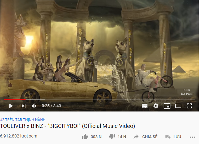 Với riêng Bigcityboi của Binz, dù lên sóng chưa lâu vẫn xuất sắc vượt qua siêu phẩm How you like that của Blackpink để vươn lên Top 2 trending của YouTube Việt Nam. Không chỉ vậy MV này còn lọt top trending trên nhiều quốc gia khiến nhiều người hâm mộ tự hào.