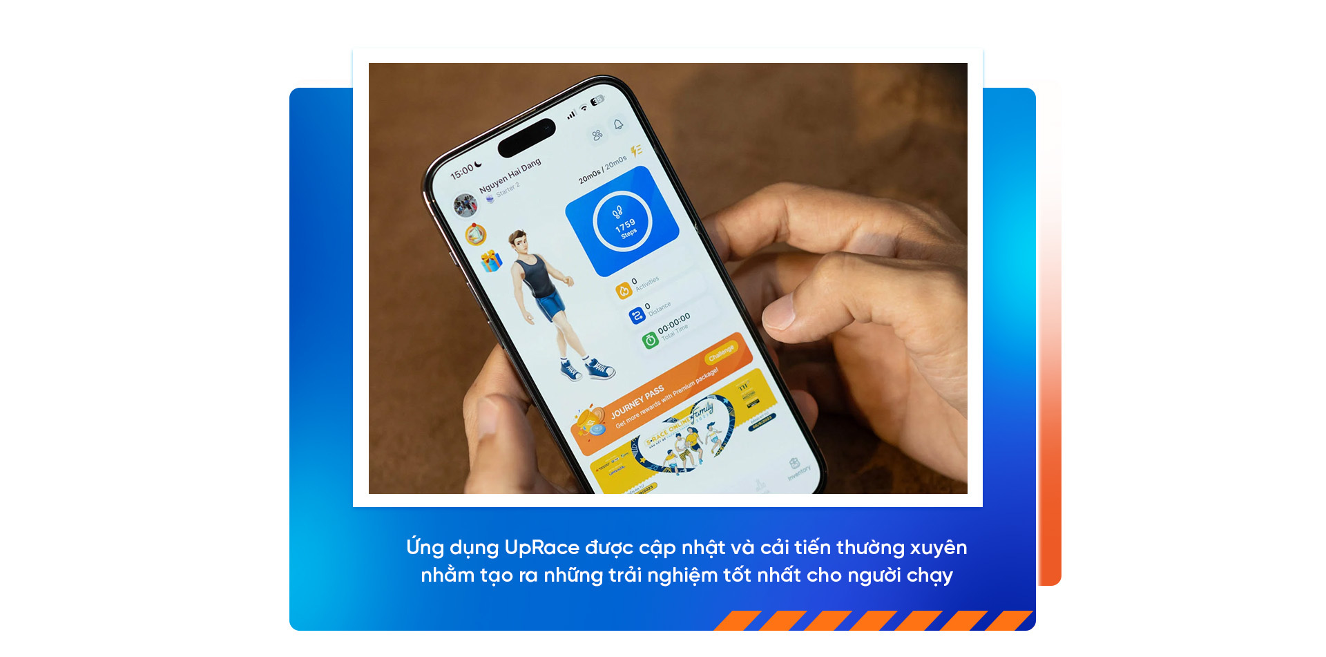 VNG cũng dành sự đầu nghiêm túc trong việc phát triển ứng dụng UpRace. Ứng dụng được VNG định hướng trở thành 1 ứng dụng chạy bộ của người Việt và dành cho người Việt. VNG đưa công nghệ trí tuệ nhân tạo (AI) tích hợp vào UpRace để phát hiện hoạt động bất thường của người chạy. Cụ thể, ứng dụng AI sẽ tự động đánh giá một cách rõ ràng và chuyên nghiệp 100.000 - 200.000 hoạt động mỗi ngày của vận động viên, phân biệt hoạt động rủi ro và cảnh báo gian lận, từ đó nâng cao tính công bằng cho ứng dụng.