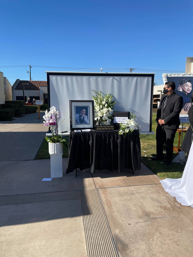 Linh cữu của cố danh hài Chí Tài được đặt trong tang lễ cho bạn bè, đồng nghiệp chào lẫn cuốiVào 11h ngày 18-12 (giờ Mỹ, tức 2h ngày 19-12 giờ Việt Nam), tang lễ của cố danh hài Chí Tài đã diễn ra tại Mỹ.