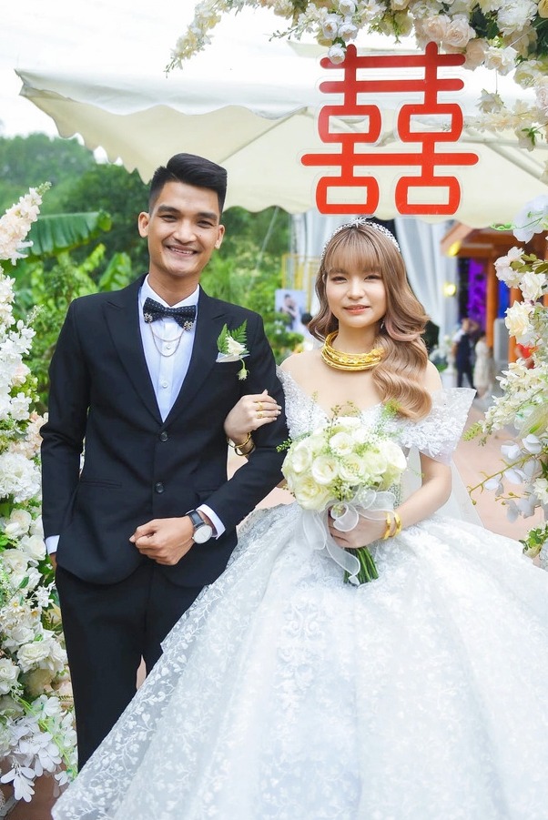 Vợ Mạc Văn Khoa đeo vàng nặng trĩu cổ trong ngày cưới