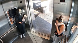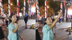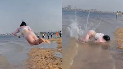 Người đàn ông nhăn mặt tỏ vẻ nặng nề khi nhấc tạ để tạo nét trước mặt vợ. Vài giây sau, 'nóc nhà' chỉ một tay nhấc bổng tạ khiến chồng sượng sùng.