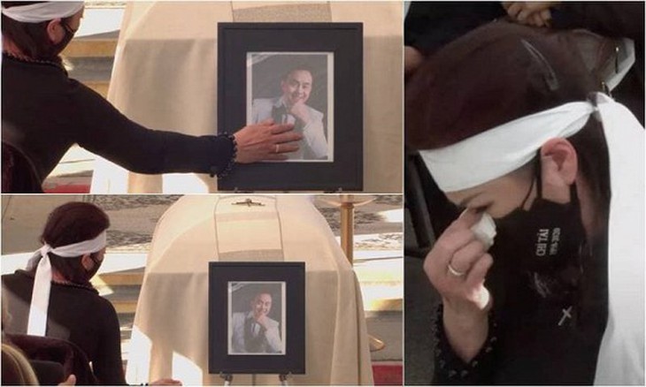 Dù đã giữ bình tĩnh từ đầu buổi lễ nhưng bà xã của nghệ sĩ Chí Tài đã khóc nức nở khi nghe giọng hát của người bạn đời vang lên ở phần sau của buổi lễ. Vừa khóc cô vừa đưa tay xoa lên gương mặt Chí Tài trong di ảnh, lưu luyến không muốn xa rời chồng. Hình ảnh này khiến tất cả mọi người dự lễ đều xúc động.