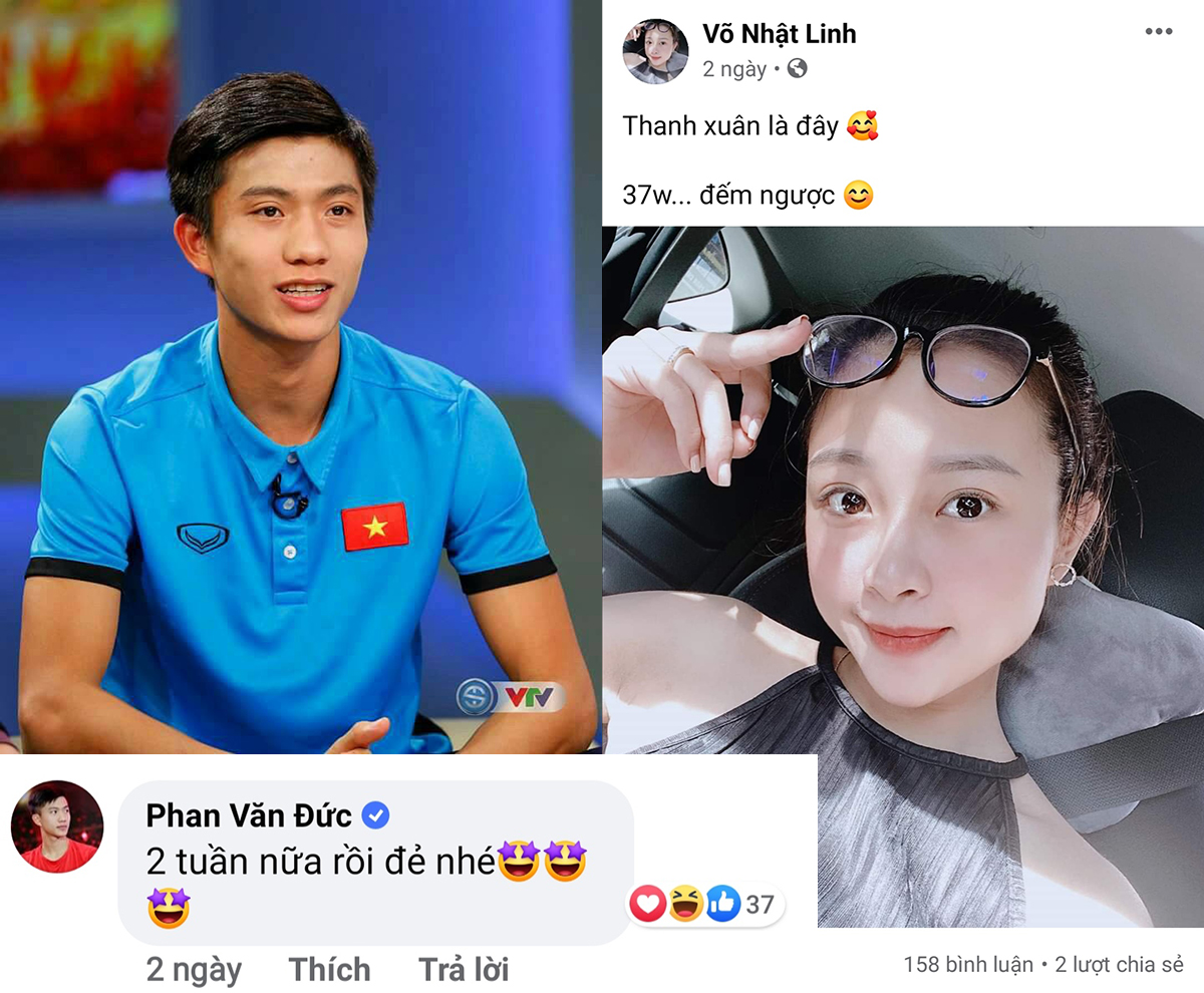 Dù không thể ở cạnh bên để chăm sóc cũng như là động viên vợ, song cầu thủ 24 tuổi đã rất biết cách làm thư giãn Nhật Linh khi bình luận dí dóm rằng: “2 tuần nữa rồi đẻ nhé" nhằm “khuyên” vợ sinh em bé… “đúng lịch”.