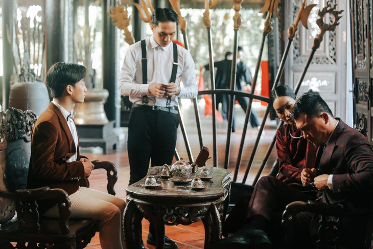 MV có sự góp mặt của nhiều văn nghệ sĩ nổi tiếng - Ảnh: NSCCNội dung MV Uyên ương độc thoại là phần tiếp theo trong kịch bản Chuyện gánh hát Adam Lâm do chính Adam Lâm xây dựng. Đó là chuyện tình giữa chàng nghệ sĩ Lâm và anh trưởng đoàn tên Phúc với nhiều thử thách.