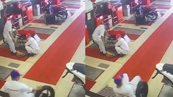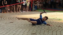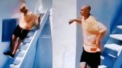 Thấy vợ "vồ ếch" dưới sân vì đá dép mình, người chồng hả dạ cười khoái chí.