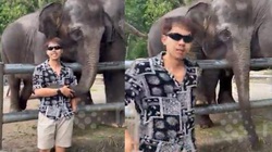 Người đàn ông giả vờ bị đuối nước giữa sông, lập tức được chú voi con bơi ra và đưa vào bờ.