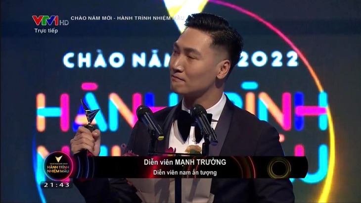 Với Mạnh Trường, năm 2021 là một năm rực rỡ với sự nghiệp khi lần đầu đoạt giải Nam diễn viên ấn tượng dù từng liên tiếp nhận đề cử và trắng tay trước đó. Ngoài giải thưởng ở VTV Awards, trước đó Mạnh Trường cũng được trao Cánh diều vàng cho hạng mục Nam chính xuất sắc cho vai Hải trong phim Hồ sơ cá sấu.