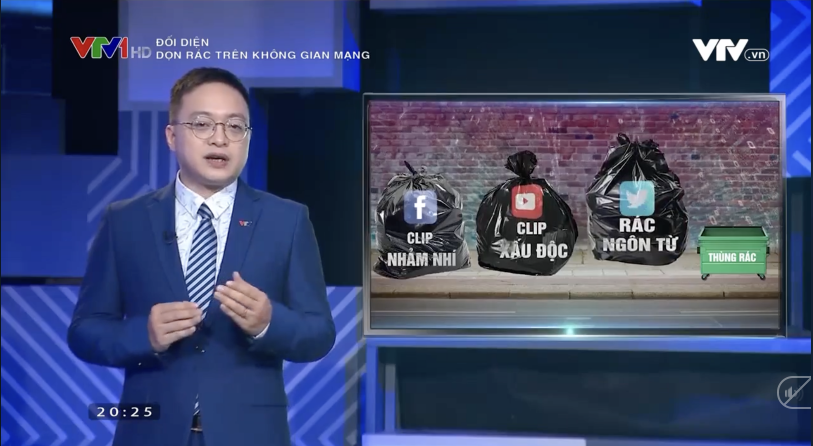 Trong chương trình Đối diện: Dọn rác trên không gian mạng phát trên VTV1 tối 29-9 đã đề cập đến nhiều hình thức giải trí nhảm, độc hại, tin giả, clip giật gân xuyên tạc sự thật trên mạng xã hội thời gian gần đây.