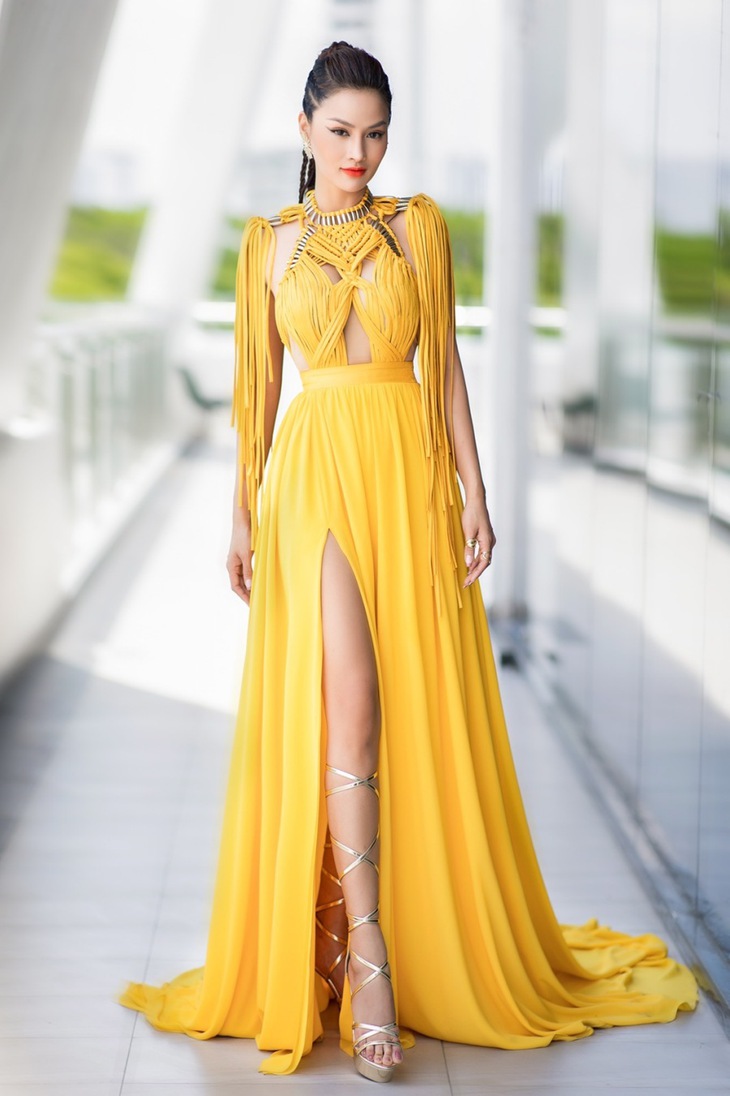 Màn catwalk và cú xoay váy "thần sầu" của Vũ Thu PhươngKhoác lên mình chiếc đầm vàng rực rỡ với những đường cut-out hết sức hiểm hóc, Vũ Thu Phương sải bước chân mềm mại, tự tin như toả ra ánh hào quang chói loá. Điểm nhấn nổi bật nhất trong màn trình diễn của nữ giám khảo là phần xoay váy "thần sầu" làm cho thí sinh phải vỡ oà vì quá ngưỡng mộ.