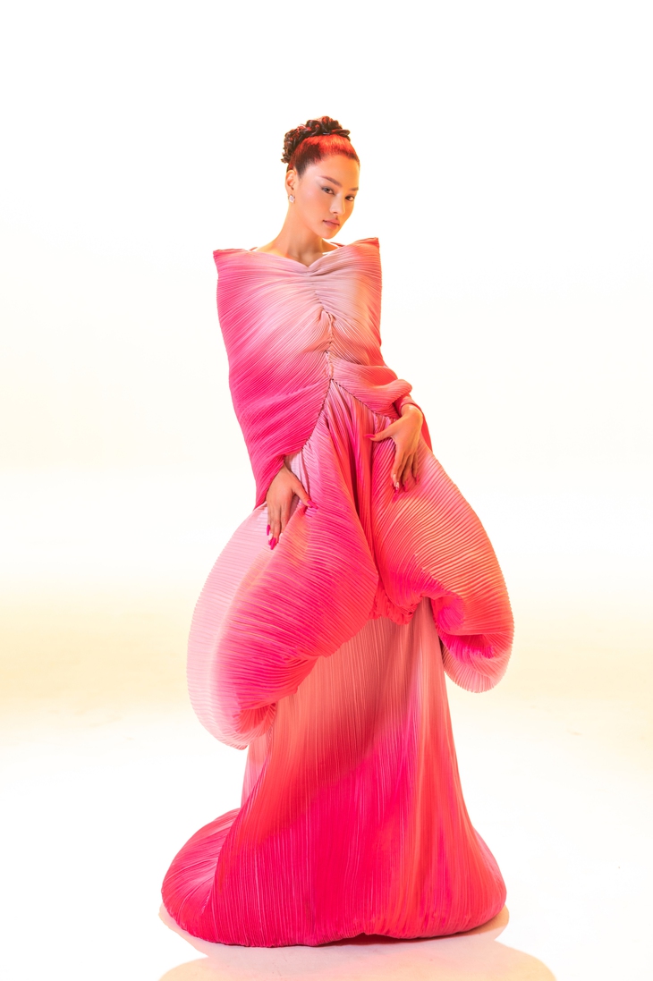 Siêu mẫu khoe dáng đẹp qua bộ váy hai dây cut-out, xẻ tà cao, tôn vòng 1 và body chuẩn như tượng tạc. Cô còn chứng minh dáng chuẩn khi diện bộ cánh khoét ngực sâu có thể mặc được theo kiểu váy dài xẻ tà thông thường, đến khi tháo rời chân váy sẽ thành bodysuit cực sexy.