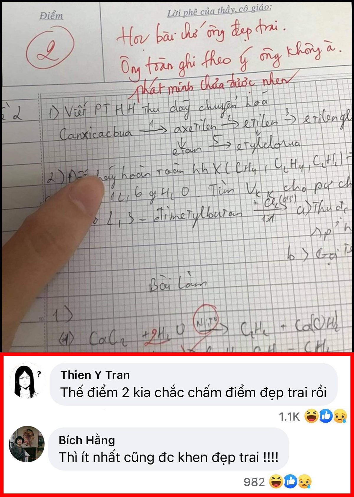 Vua Còm 10/4: Cô giáo gửi lời phê 'xì tin' cho bài kiểm tra 2 điểm