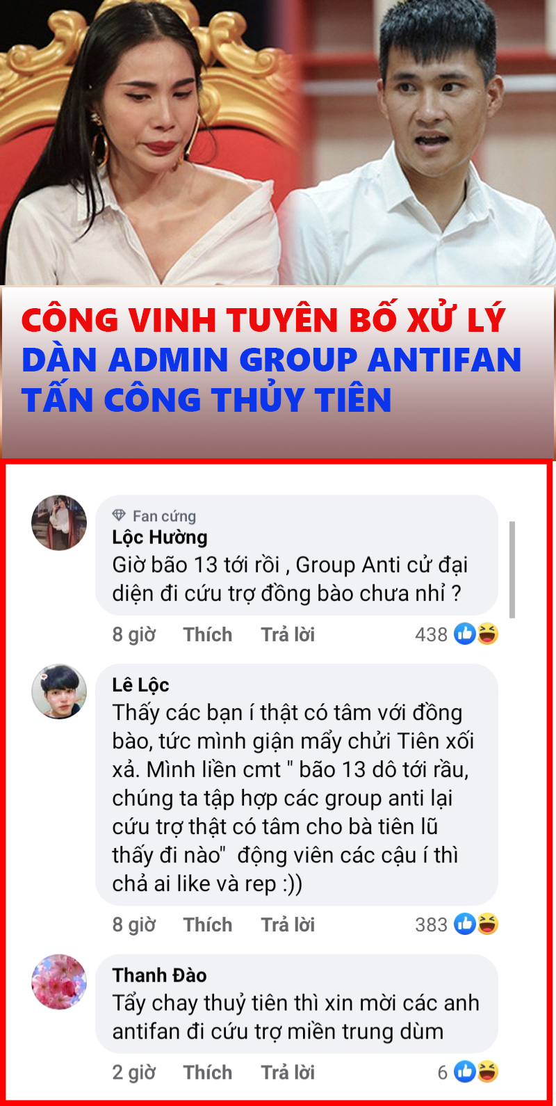 Công khai hình ảnh của nhiều admin trong nhóm antifan Thủy Tiên, dù nhận phản ứng trái chiều của cư dân mạng, song rất nhiều người đã đồng cảm với việc làm của cựu tuyển thủ Việt Nam Lê Công Vinh dành cho vợ mình.