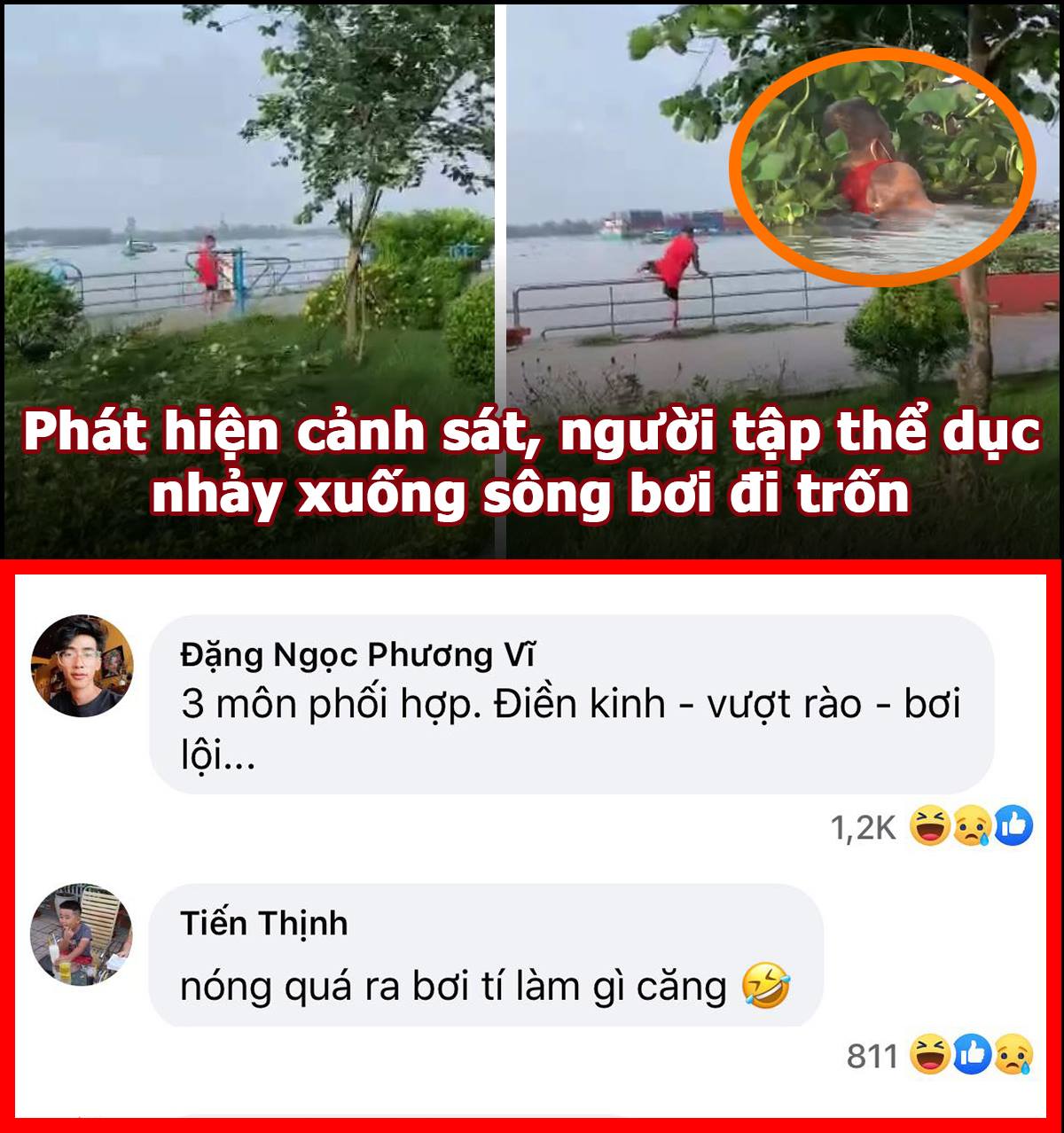 Tại buổi tuần tra ngày 13-7 của tổ công tác thuộc Công an TP Mỹ Tho, tỉnh Tiền Giang, đã xử lý hơn 20 trường hợp không chấp hành chỉ thị 16 của Thủ tướng Chính phủ. Có người khi phát hiện đang đi bộ thể dục tại công viên, thấy lực lượng chức năng đã chuyển sang "vượt rào" rồi nhảy luôn xuống sông.