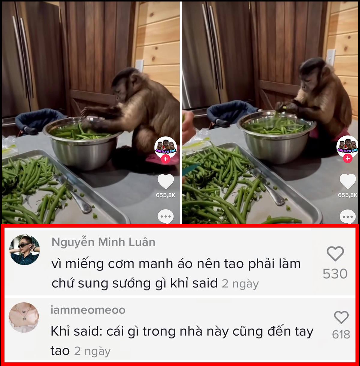 Đoạn clip thu hút hơn 7 triệu lượt xem chỉ trong chưa đầy 2 ngày. Chú khỉ vẫn chăm chỉ lặt đậu que phụ giúp chủ nhân của mình dù mặt mũi có hơi... quạu quọ chút đỉnh.