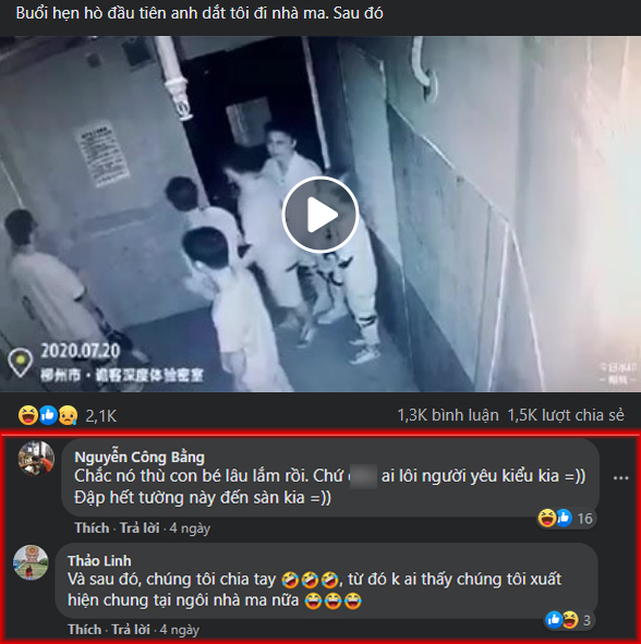 Đoạn clip dắt người yêu đi nhà ma trong buổi hẹn hò đầu đã khiến cộng đồng mạng xôn xao, cười nắc nẻ như được mùa. Ai nấy đều không thể tin được sao chàng trai lại có thể "đối xử" với bạn gái của mình như vậy. Sau khi bị hình nhân rượt, chàng trai bấn loạn, kéo lê bạn gái hết từ ngõ này sang hành lang nọ, đập cả xuống sàn...