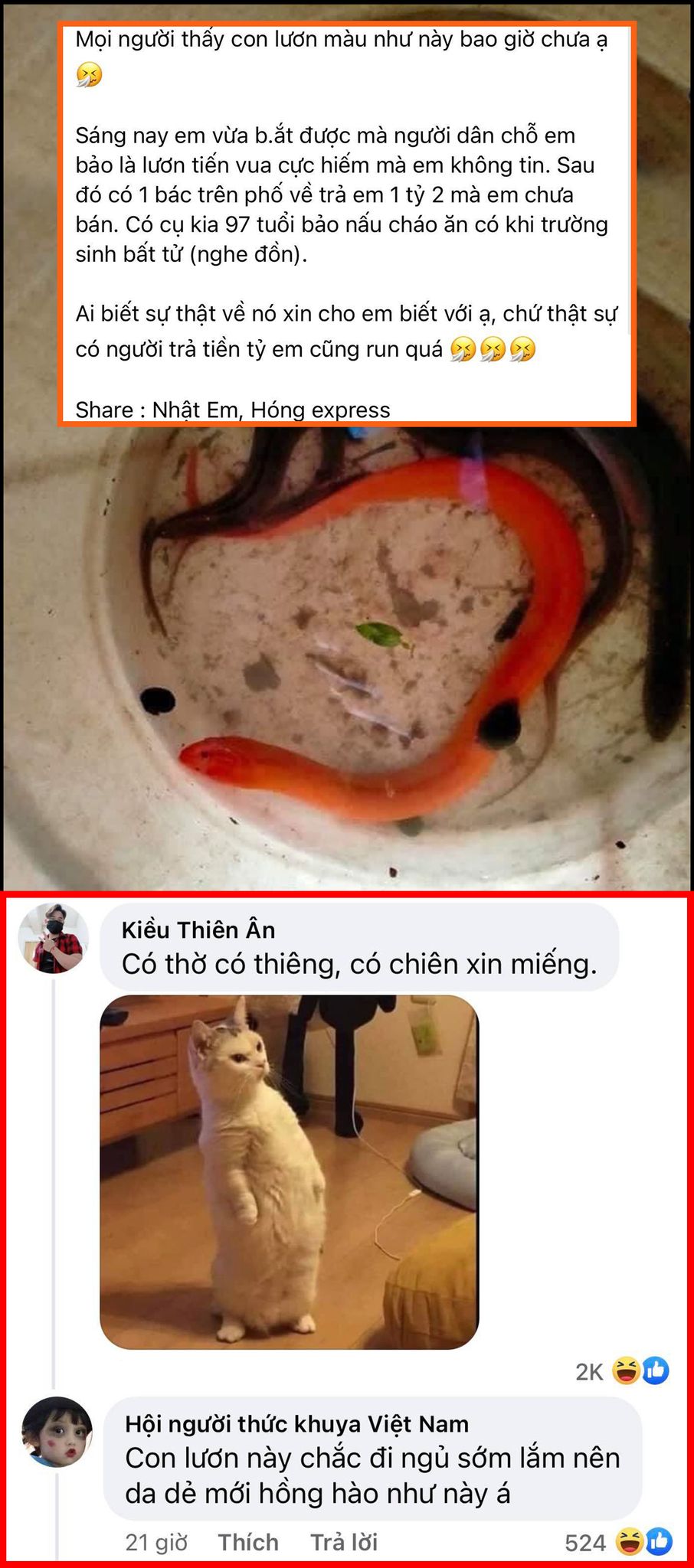 Vua Còm 26/2: Con lươn màu cam được trả giá tới 1,2 tỉ đồng?