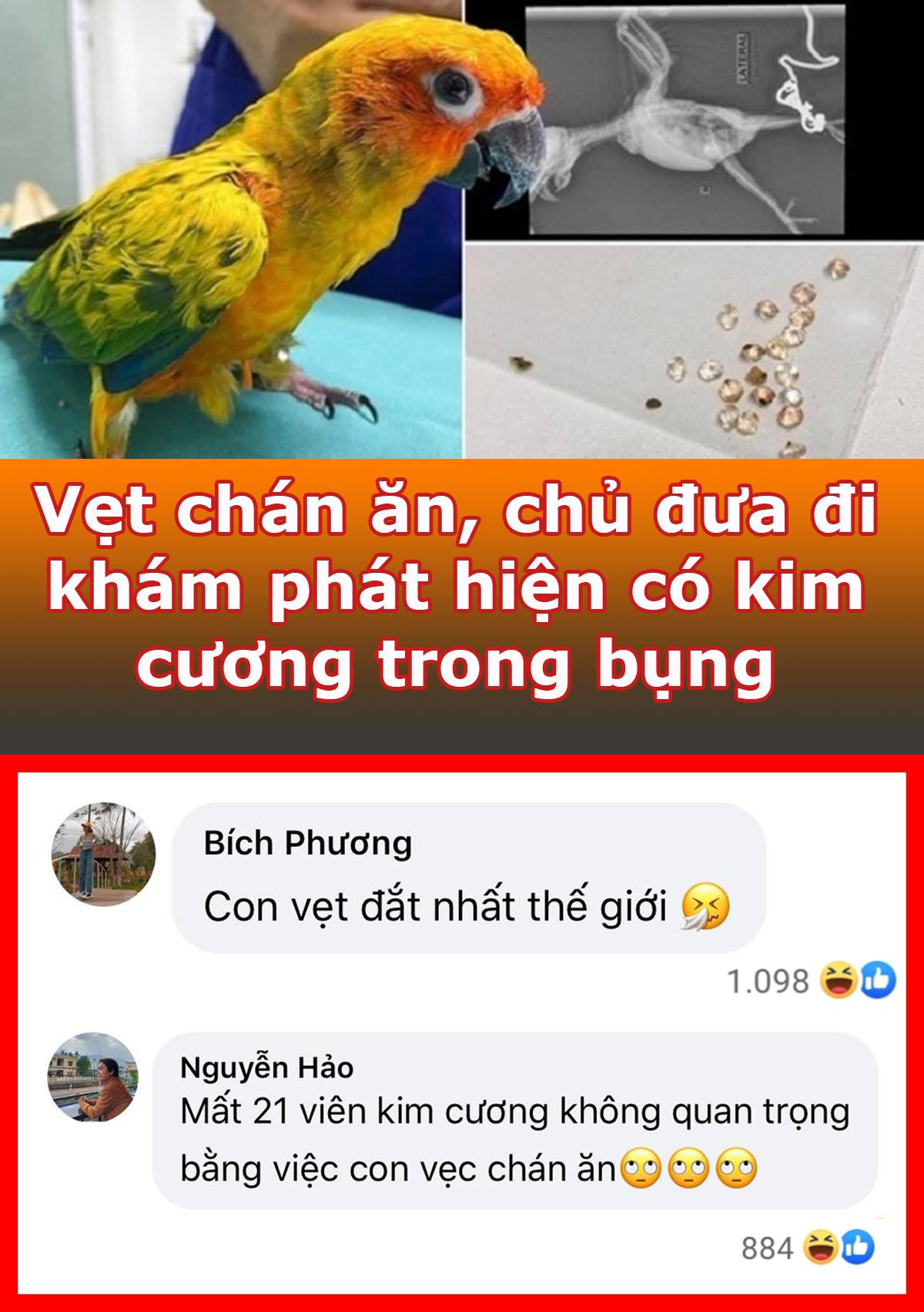 Màn "tự nâng cấp" này đã đi vào lịch sử nhân loại, chú vẹt trở thành con vẹt đắt nhất thế giới sau khi nuốt 21 viên kim cương to khoảng 0,2 carat. Vụ việc này xảy ra tại Bangkok, Thái Lan.
