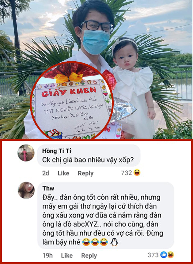 Anh Nguyễn Trần Trung Sơn (30 tuổi, kĩ sư) đã khiến cộng đồng mạng không khỏi thích thú trước hành động làm giấy khen chúc mừng con gái 1 tuổi đã "tốt nghiệp khoá ăn dặm" xuất sắc. Được biết, cháu bé tên là Chiêu Anh, ở nhà có nickname là Minnie.
