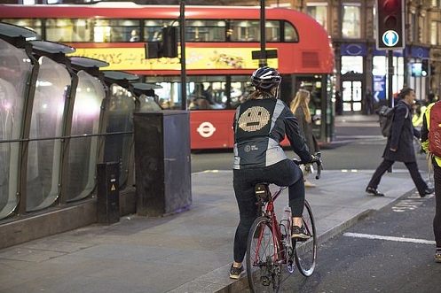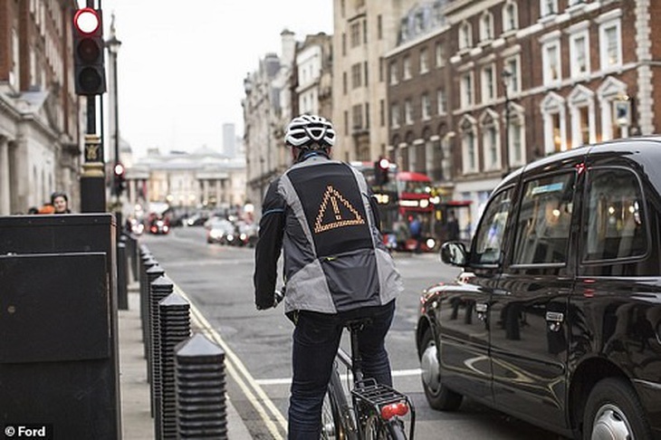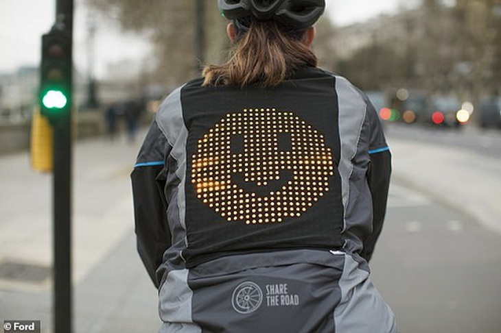 Chiếc áo khoác thú vị này được Ford hé lộ như một phần của chiến dịch Share the Road của hãng nhằm thúc đẩy việc đạp xe an toàn, cũng như tăng khả năng đối thoại giữa những người tham gia giao thông trên đường.