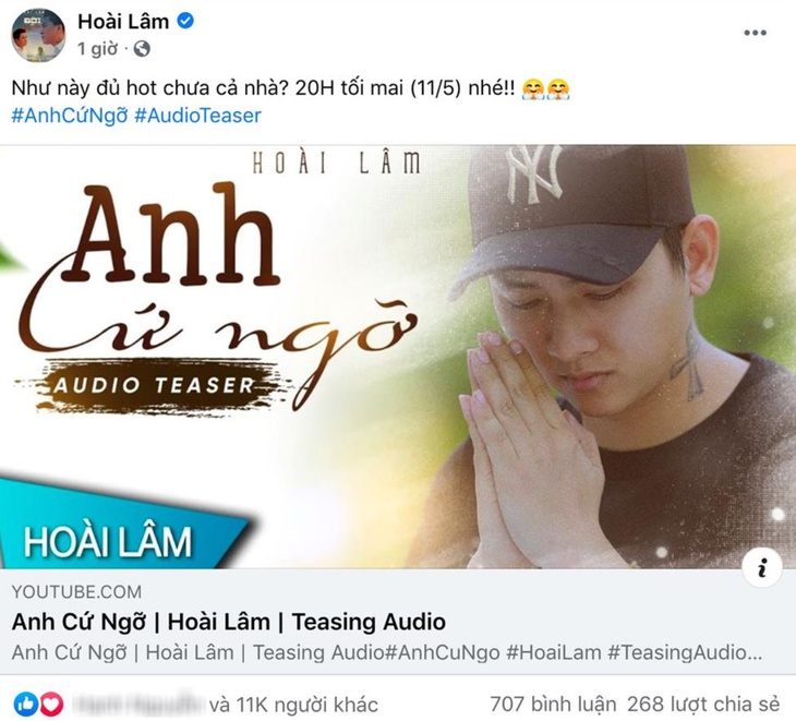 Trong khi quản lý kêu gọi làm sản phẩm liên quan để từ "thương em", Hoài Lâm lại chính thức đăng tải bản audio teaser cho bài hát mới mang tên - Anh cứ ngỡ. Dù chỉ mới hai câu: "Anh cứ ngỡ em thương anh nhiều lắm. Mà qua bão giông mới biết mình đã lầm'", khiến fan lụi tim vì chất giọng quá đỗi tình cảm.