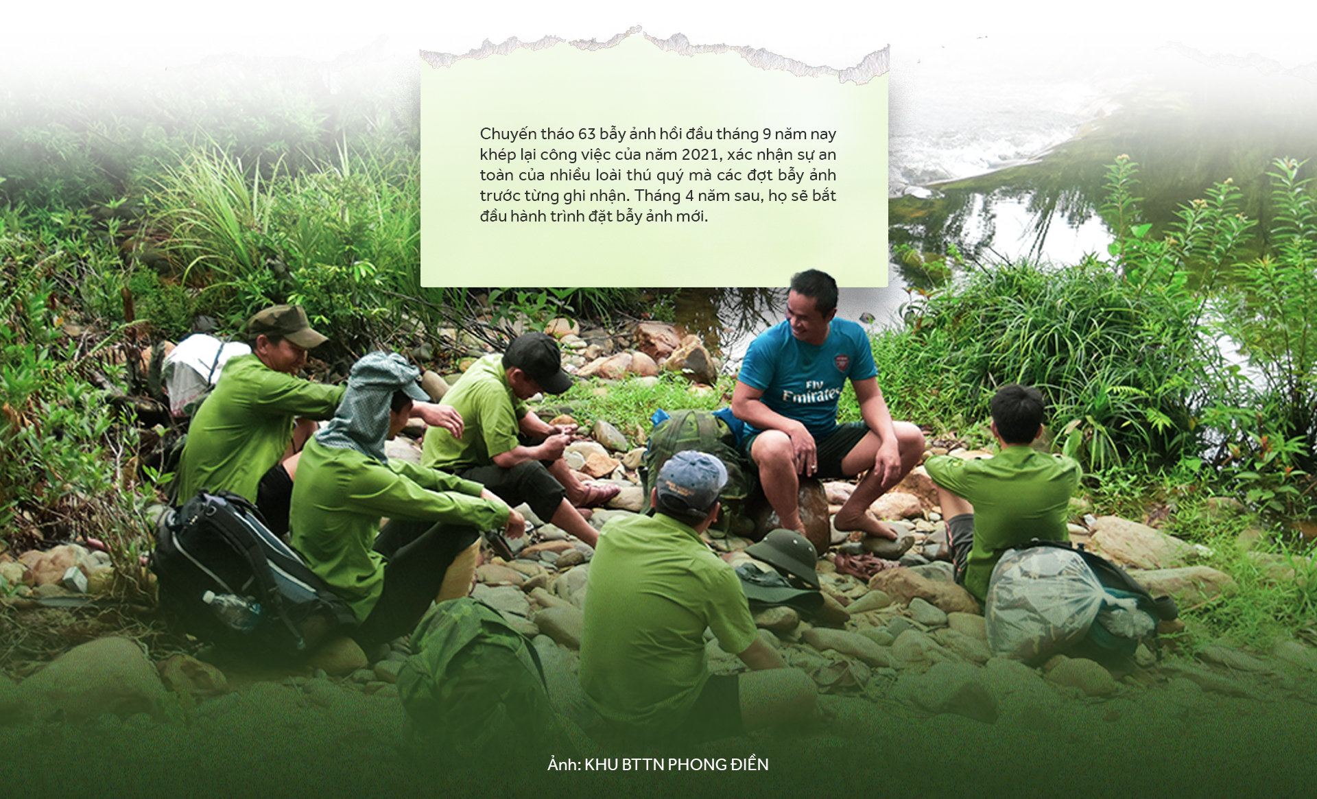 Chuyến tháo 63 bẫy ảnh hồi đầu tháng 9 năm nay khép lại công việc của năm 2021, xác nhận sự an toàn của nhiều loài thú quý mà các đợt bẫy ảnh trước từng ghi nhận. Tháng 4 năm sau, họ sẽ bắt đầu hành trình đặt bẫy ảnh mới.