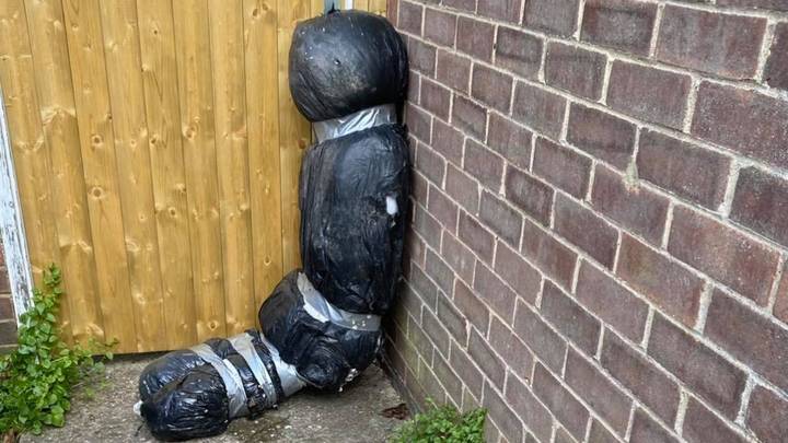 Đồ trang trí Halloween phong cách …sởn gai ốc - Ảnh: Triangle NewsHóa ra, những người hàng xóm đã gọi điện báo cảnh sát sau khi họ phát hiện một “xác chết được bọc trong túi nilon đen” nằm trong vườn của Cara tại thị trấn Houghton Regis. Tính chất nghiêm trọng của sự việc khiến cảnh sát hạt Bedfordshire (Anh) ngay lập tức có mặt và phong tỏa căn nhà.