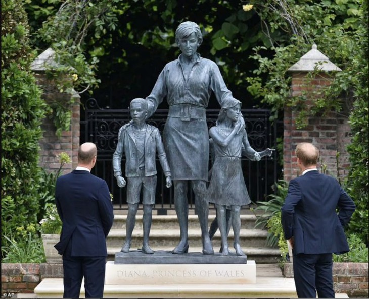 Hoàng tử William và Harry tái hợp trong sự kiện đặc biệt của người mẹ quá cốHai anh em đứng chung khung hình kề vai nhau trước khi cùng nhau lật tấm vải phủ công bố bức tượng công nương Diana do nhà điêu khắc Rank Broadley thực hiện. Bức tượng hiện được đặt trong Khu vườn Sunken đã được tu sửa, đây từng là nơi xoa dịu tâm hồn và an ủi cho công nương Diana trước khi bà qua đời năm 1997.