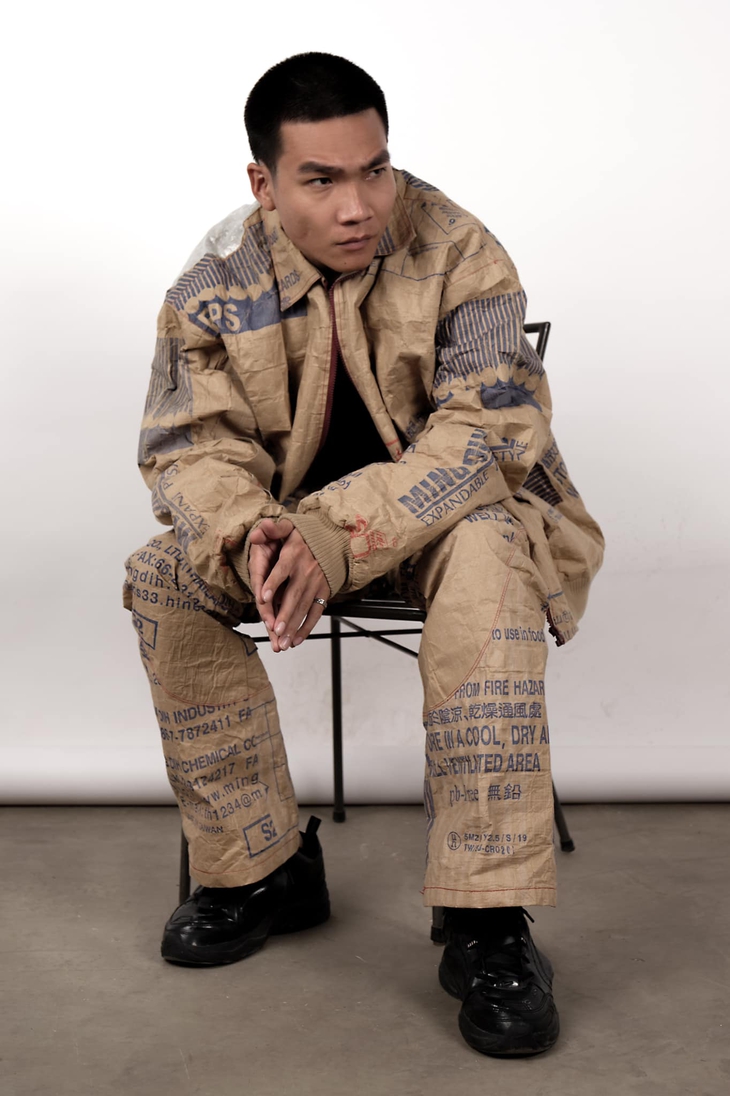 Trong ảnh, Wowy mặc bộ trang phục lạ mắt từ màu sắc, hoạ tiết cũng như chất liệu thô cứng lại nhăn nhúm làm nhiều người liên tưởng đến chiếc "bao tải đựng xi-măng" - một vật liệu quen thuộc trong lĩnh vực xây dựng.