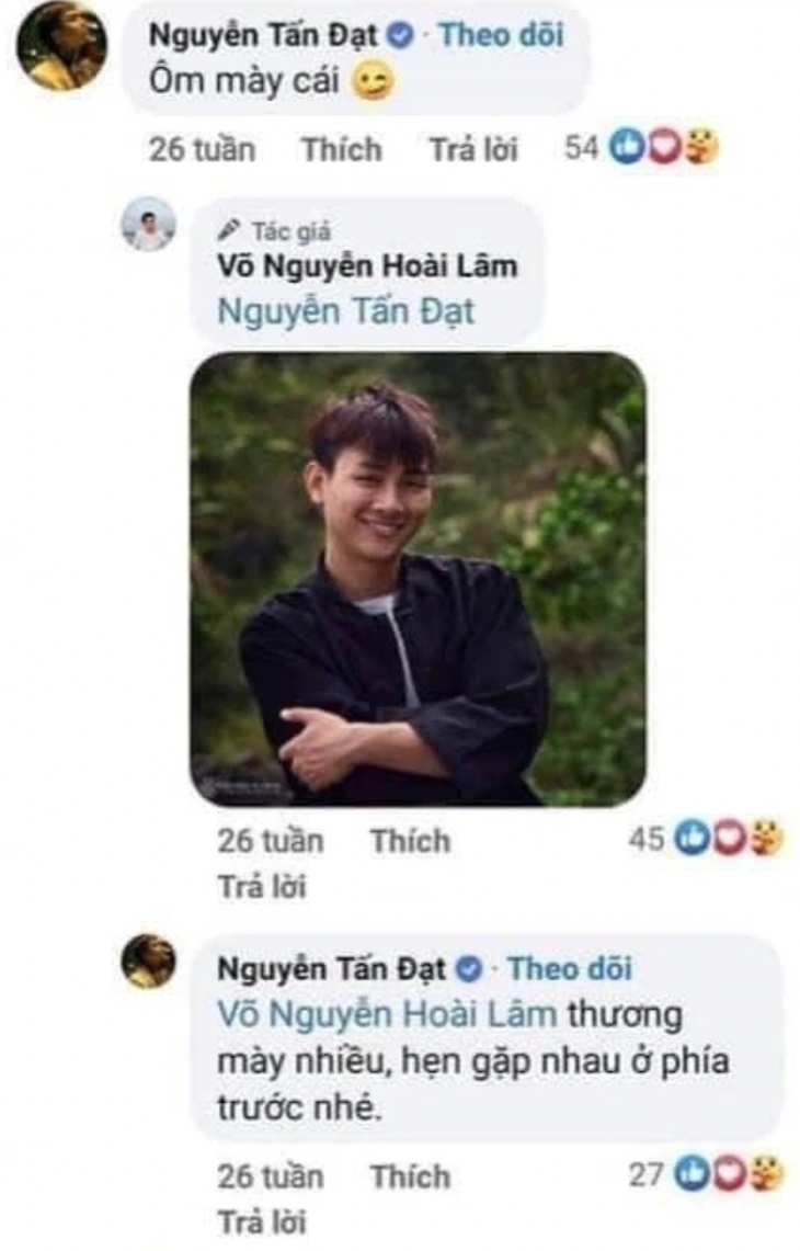 Đáp lại bạn mình, Hoài Lâm cũng thả nhẹ 1 tấm ảnh cười tươi rói. Tiếp đó, Đạt G liền nhắn nhủ người bạn thân: "Thương mày nhiều, hẹn gặp nhau ở phía trước nhé!". Có thể thấy, tình anh em giữa Đạt G và Hoài Lâm từng rất thân thiết.