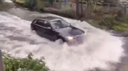Dù biết đường ngập sâu, tài xế lái chiếc Range Rover vẫn cố tình đi vào và kết quả xe chết máy.