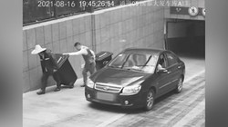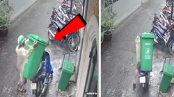 Cô gái đi bộ bất ngờ bị xe rác không người lái 'theo đuổi' phía sau tông ngã xuống đường.