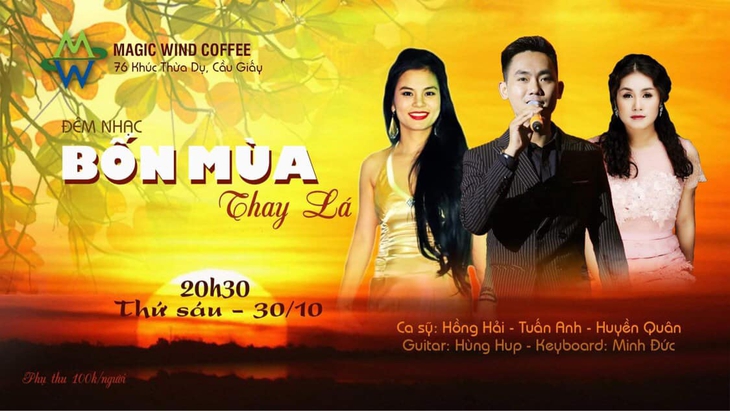 Đêm nhạc Bốn mùa thay lá diễn ra lúc 20h30 tại Magic Wind Coffee, Hà Nội