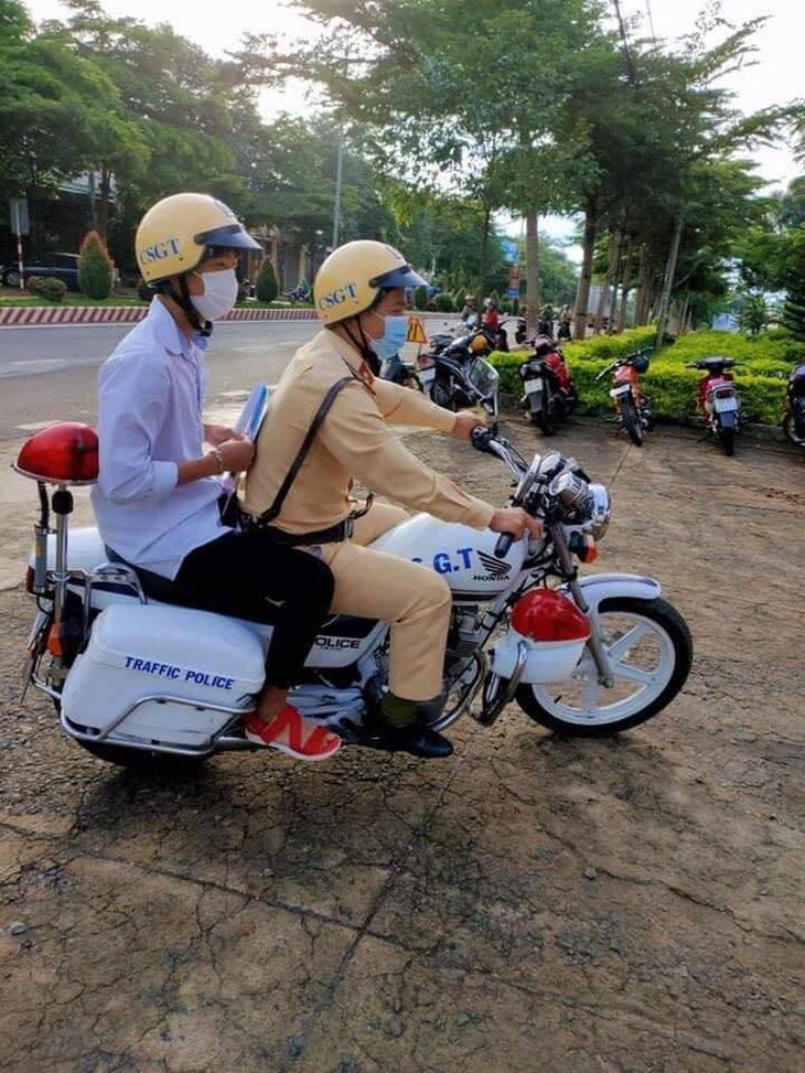 Vào khoảng 7h ngày 8-7, tại điểm thi trường THPT Trần Hưng Đạo (thị trấn Đắk Mil, tỉnh Đắk Nông), một nam thí sinh đang loay hoay trước cổng, không vào làm thủ tục dự thi khiến trung úy Phạm Văn Hà thuộc Đội CSGT Công an huyện Đắk Mil thắc mắc.