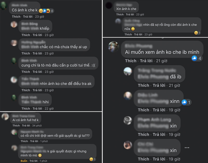 Thế nhưng, bên cạnh những bình luận bày tỏ sự xót xa cho số phận người phụ nữ xấu số, thì không ít cư dân mạng đã nhanh tay thể hiện cách hành xử phản cảm, thiếu nhân văn của mình, khi hỏi xin... ảnh không che của thi thể! Thậm chí không ít tài khoản khẳng định đang sở hữu những tấm ảnh không che của người phụ nữ xấu số, yêu cầu nhắn tin riêng đối với ai đang có nhu cầu "hóng".