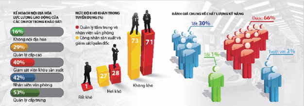 TTCT - Kỹ năng mềm, khả năng thích ứng linh hoạt, thái độ làm việc có trách nhiệm và sự đáng tin cậy... sẽ là những tiêu chí mới trên thị trường tuyển dụng lao động? TTCT trao đổi với TS Đỗ Quỳnh Chi - giám đốc Trung tâm Nghiên cứu quan hệ lao động, đồng tác giả của nghiên cứu mới về xu hướng lao động trong khu vực FDI của Viện Khoa học lao động và xã hội (ILSSA) và Công ty nhân sự ManpowerGroup.Nguồn: Nghiên cứu “Xu hướng các nhu cầu kỹ năng trong khu vực FDI” - Đồ họa: M.N.Nghiên cứu mới của chị cho thấy trong tình hình suy thoái kinh tế, các doanh nghiệp FDI vẫn ăn nên làm ra, thậm chí xét riêng về khía cạnh lao động thì họ gặp nhiều thuận lợi hơn trước. Điều này xảy ra như thế nào? - Nghiên cứu này cho thấy có tới 52% doanh nghiệp FDI tham gia khảo sát cho biết họ đã tăng trưởng khá đáng kể về doanh thu và lợi nhuận trong năm 2013, và chỉ có 5% nói rằng họ bị thua lỗ. Chúng tôi tổng kết rằng có ít nhất ba lý do vì sao các doanh nghiệp FDI lại có sự tăng trưởng ngoạn mục như vậy trong điều kiện kinh tế của Việt Nam gặp nhiều khó khăn. Thứ nhất, các doanh nghiệp FDI có lợi thế rất lớn về vốn, quy mô lao động cũng như công nghệ so với các đối thủ trong nước.Thứ hai, khi các doanh nghiệp trong nước cùng ngành gặp khó khăn, thua lỗ, lực lượng lao động rất quý giá của các doanh nghiệp này vốn đã có kinh nghiệm và được đào tạo bị thu hút sang các doanh nghiệp FDI là đối thủ của chính họ ở Việt Nam.Thứ ba, trong một thị trường như ở Việt Nam, khi các doanh nghiệp trong nước đều đang lao đao, khó khăn, mức độ cạnh tranh giảm sút, nên doanh thu cũng như mức độ bán hàng của doanh nghiệp FDI tăng dễ dàng.Nghiên cứu ghi nhận hiện tượng người lao động có bằng cấp nhưng chấp nhận làm công việc giản đơn trong các nhà máy sản xuất hàng gia công. Chuyện đó nói lên điều gì? - Không phải đến khi kinh tế khủng hoảng hiện tượng này mới xuất hiện mà vào thời điểm 2006-2007, khi chúng tôi đi nghiên cứu ở một doanh nghiệp lớn - nơi có hơn 1.000 công nhân trực tiếp có bằng đại học - thì được họ cho biết đây là tình trạng khá phổ biến. Đó là điều rất đáng buồn. Qua nghiên cứu nhiều năm, chúng tôi đúc rút một số lý do khiến nhiều sinh viên đại học thất nghiệp. Một là, đây là lỗi của hệ thống giáo dục - đào tạo chưa kịp thời cập nhật những sự thay đổi trong thực tế.Chúng ta đều biết rằng để duy trì khả năng cạnh tranh, các doanh nghiệp hiện nay thay đổi hằng ngày về công nghệ, cách quản lý... Trong khi đó, chương trình học tại các trường dạy nghề có khi cả chục năm vẫn chưa thay đổi nhiều. Điều đó khiến một sinh viên mới ra trường hoặc mới tốt nghiệp một trường nghề có khi phải mất sáu tháng đến một năm mới có thể bắt đầu làm việc được.Doanh nghiệp nhìn vào chi phí phải bỏ ra để đào tạo lại như vậy thì thấy ngại. Hai là, kỹ năng mềm (còn gọi là kỹ năng tổng quát) của các bạn rất yếu, dù kỹ năng chuyên môn rất tốt. Ví dụ làm thế nào có thể hợp tác với mọi người trong cùng một nhóm, giao tiếp như thế nào để đạt hiệu quả cao nhất trong công việc, hay phải đến đúng giờ..., những điều rất đơn giản nhưng không được sinh viên chú ý.Các nhà tuyển dụng phàn nàn rất nhiều về thái độ tiếp nhận công việc của sinh viên mới, nhất là tâm lý không muốn làm những việc bị cho là “không xứng tầm”. Giám đốc sản xuất của một công ty kể khi dưới xưởng có vấn đề về máy móc cần một kỹ sư mới ra trường xuống cùng nhân viên sửa chữa, tân kỹ sư từ chối: “Tôi chỉ thiết kế máy móc thôi, sửa máy không phải việc của tôi”.Một giám đốc nhân sự của Nhật Bản đã nói với chúng tôi: “Ở Nhật Bản, chúng tôi coi việc một kỹ sư biết làm mọi công đoạn trong một chu trình sản xuất dù lớn hay nhỏ là một niềm tự hào. Tôi có thể làm được mọi việc mà công nhân của chúng tôi làm. Tôi rất ngạc nhiên vì sao kỹ sư của Việt Nam lại cảm thấy xấu hổ hoặc ngại ngùng khi phải xắn tay áo làm cùng công nhân của mình”.Họ đánh giá điều này là một trong những điều cơ bản để quyết định nhân viên đó có đáng được thăng chức hay không, có đáng được duy trì tại doanh nghiệp đó hay không. Đó chính là kỹ năng mềm.Một điểm nữa là lựa chọn việc làm của sinh viên chưa mang tính chiến lược. Đa số chọn việc làm dựa vào mức lương mà không lưu tâm những vấn đề khác, chẳng hạn một doanh nghiệp trả lương không cao lắm nhưng cơ hội học hỏi, cơ hội thăng tiến, cơ hội phát triển rất tốt.Có bạn thích làm ở doanh nghiệp lớn, không thích vào doanh nghiệp nhỏ dù để chứng tỏ được mình ở một doanh nghiệp lớn có thể mất ít nhất 3-4 năm, trong khi doanh nghiệp nhỏ có thể chỉ mất khoảng một năm khi được giao những việc quan trọng.Diễn biến thị trường lao động nh