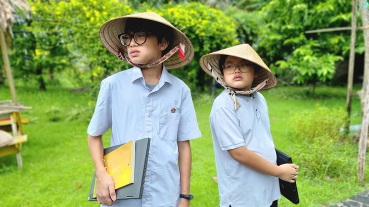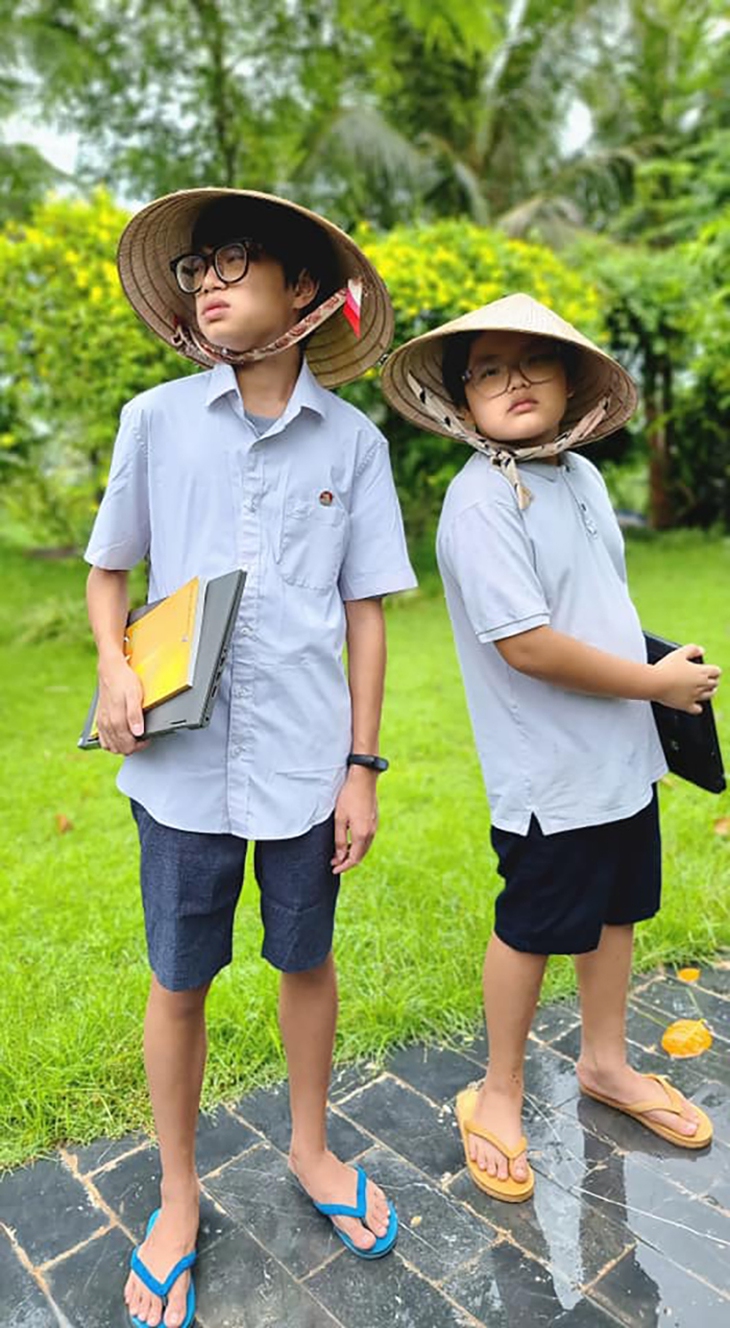 Ấy thế mà hai cậu con trai của nghệ sĩ hài Xuân Bắc mới có dịp được bố "ẵm" lên mạng xã hội và khoe: "Khai giảng năm học mới. Hai đứa đi dự khai giảng từ phòng khách sang... phòng học!".
